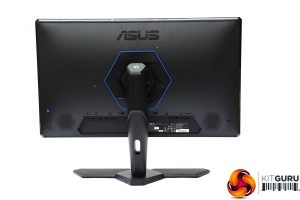 The CG32UQ is a fairly sober visual design by gaming screen standards. The blue hexagon on the rear around where the stand meets the panel is the only flash of colour. The appearance is solid but not overly exciting. However, turn this screen on and the dots you can see around edge of the rear of the bezel light up – these are ambient lighting that can be set to react to the hue of what is onscreen.