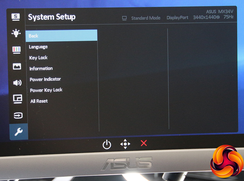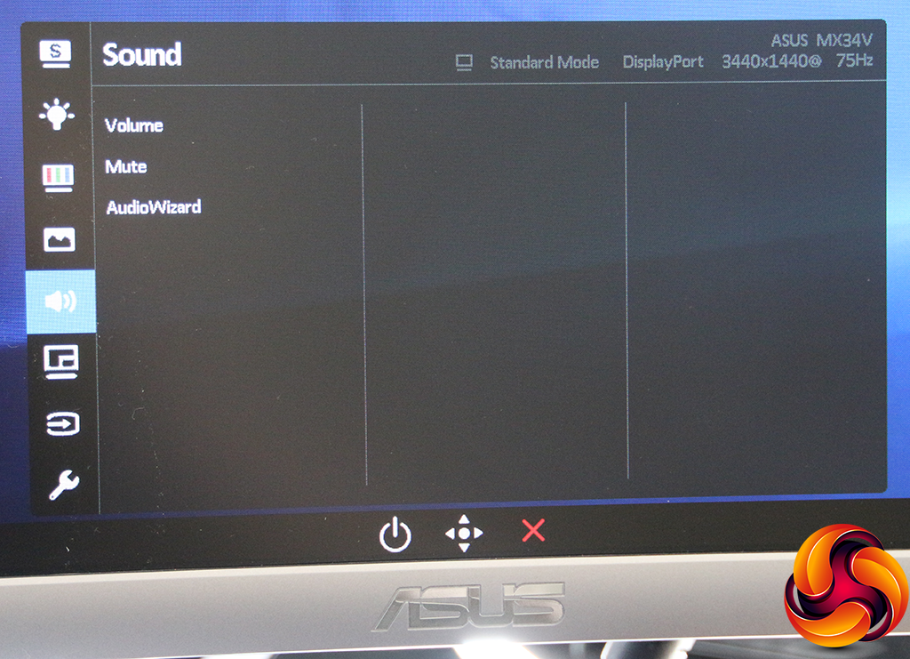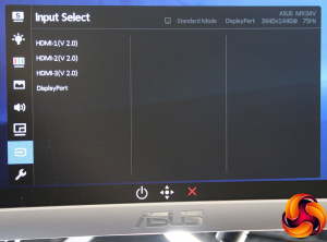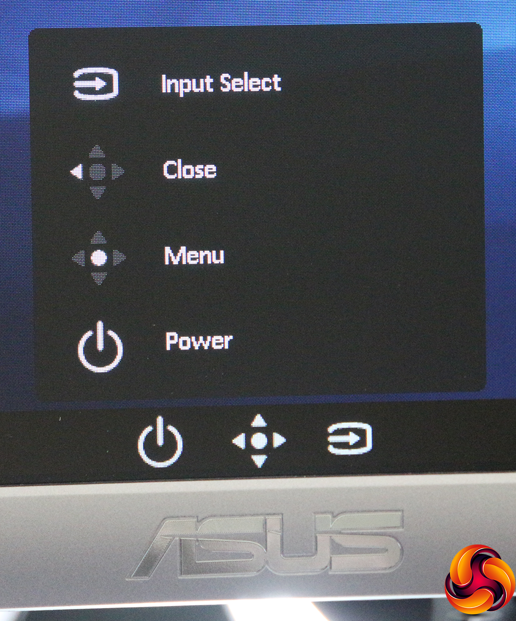 The left-hand button alongside the joystick calls up the power controls for the monitor, which you then operate with the joystick. Pressing the right-hand button twice calls up the list of inputs, with the joystick again used to navigate the options.