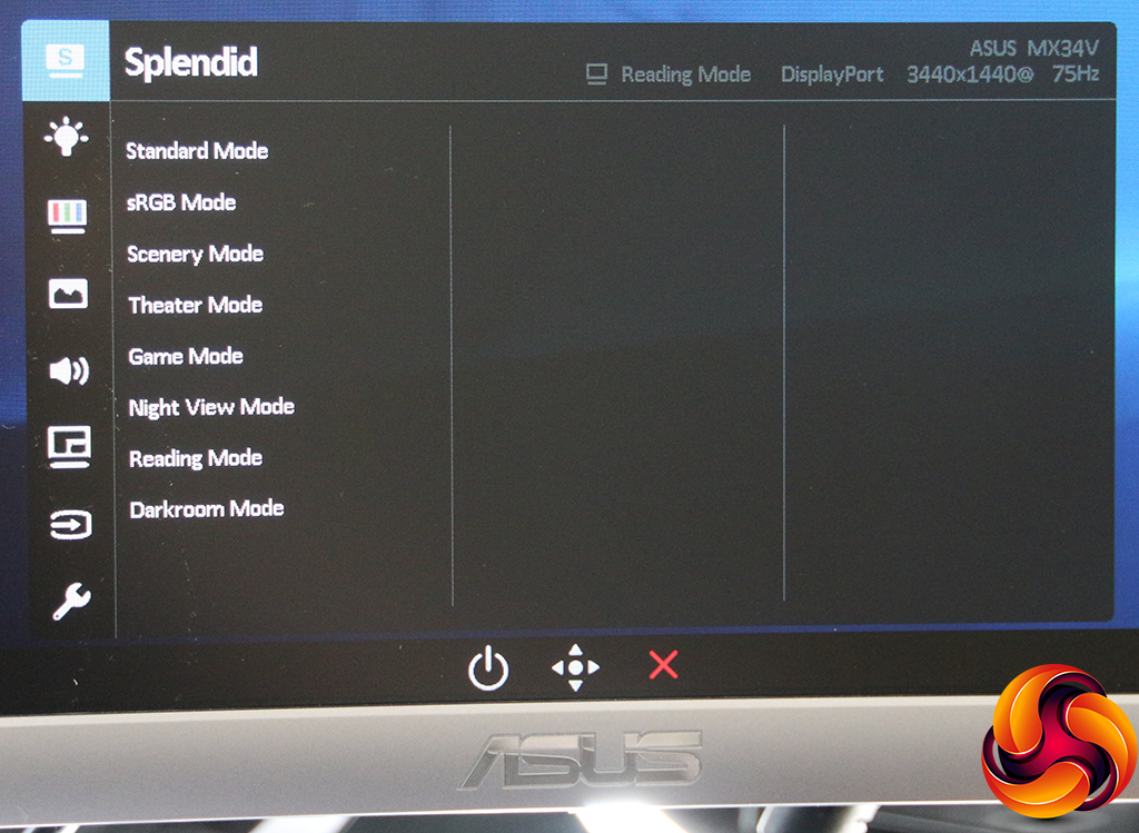 The default main menu option to appear first is the Splendid modes, which are the OSD presets. There's a decent selection of these available covering most everyday tasks, including Standard, sRGB, Scenery, Theater, Game, Night View, Reading, and Darkroom. The default, unsurprisingly, is Standard mode.