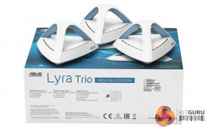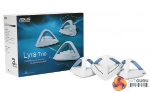 The ASUS Lyra Trio box is attractively illustrated, providing a reassuring sense of a premium product.