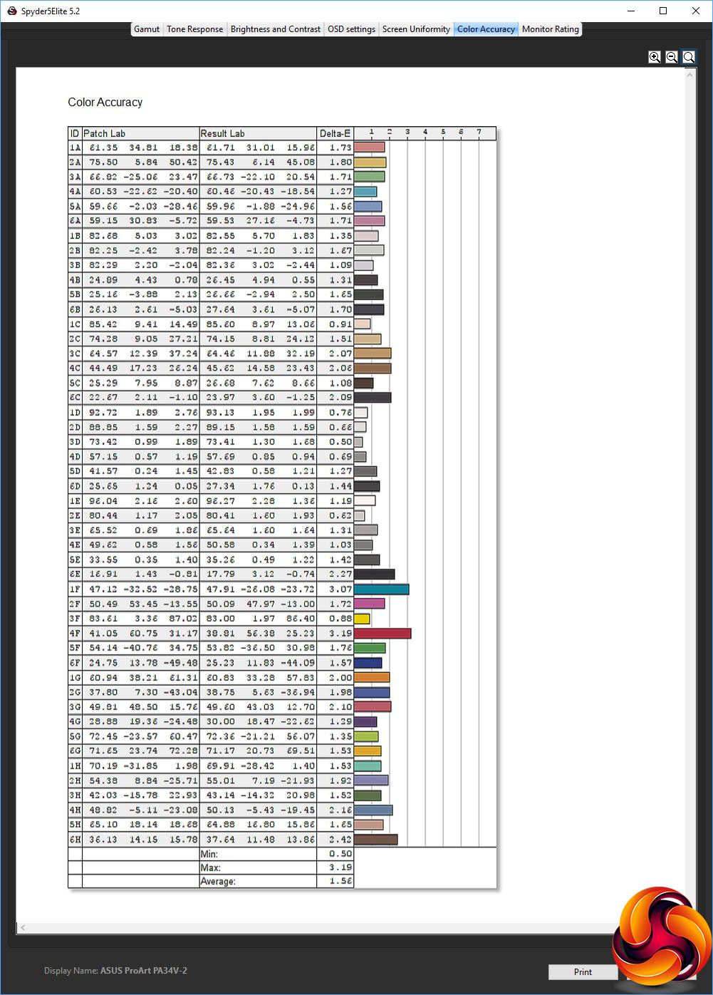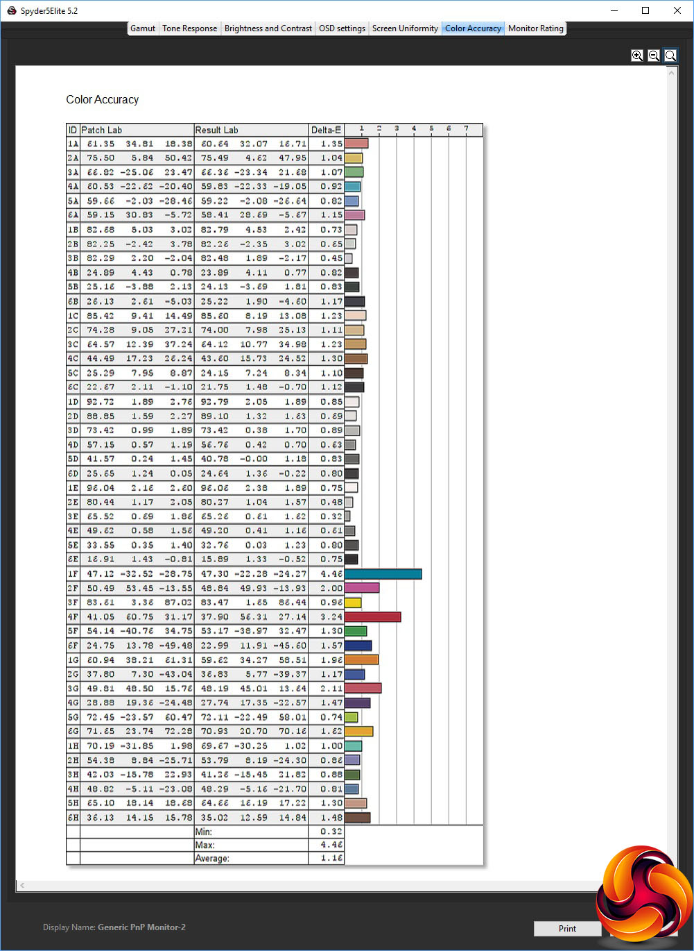 - The colour accuracy, expressed as a Delta E ratio, with a result under 3 being fine for normal use, and under 2 being great for colour-accurate design work.