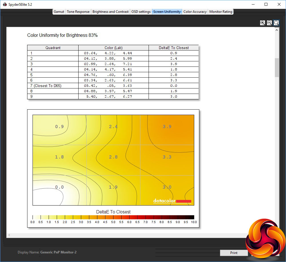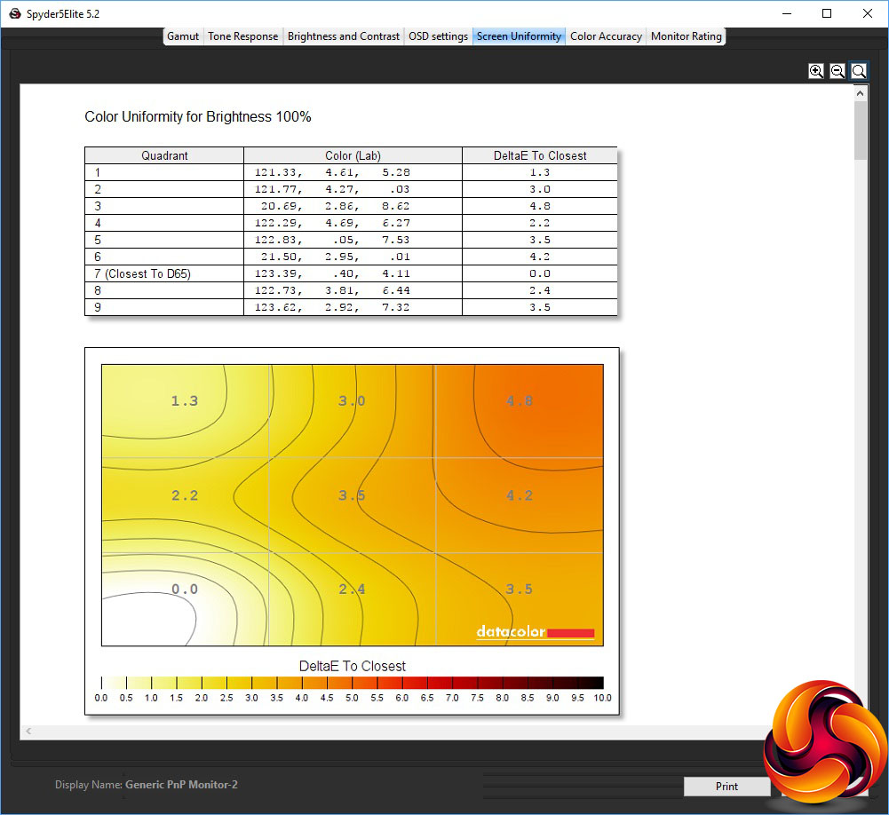 Brightness uniformity is good, with just a few per cent of variation beyond the centre, apart from the top-right corner. However, again the PA32UC was better, as was Samsung's CF791.