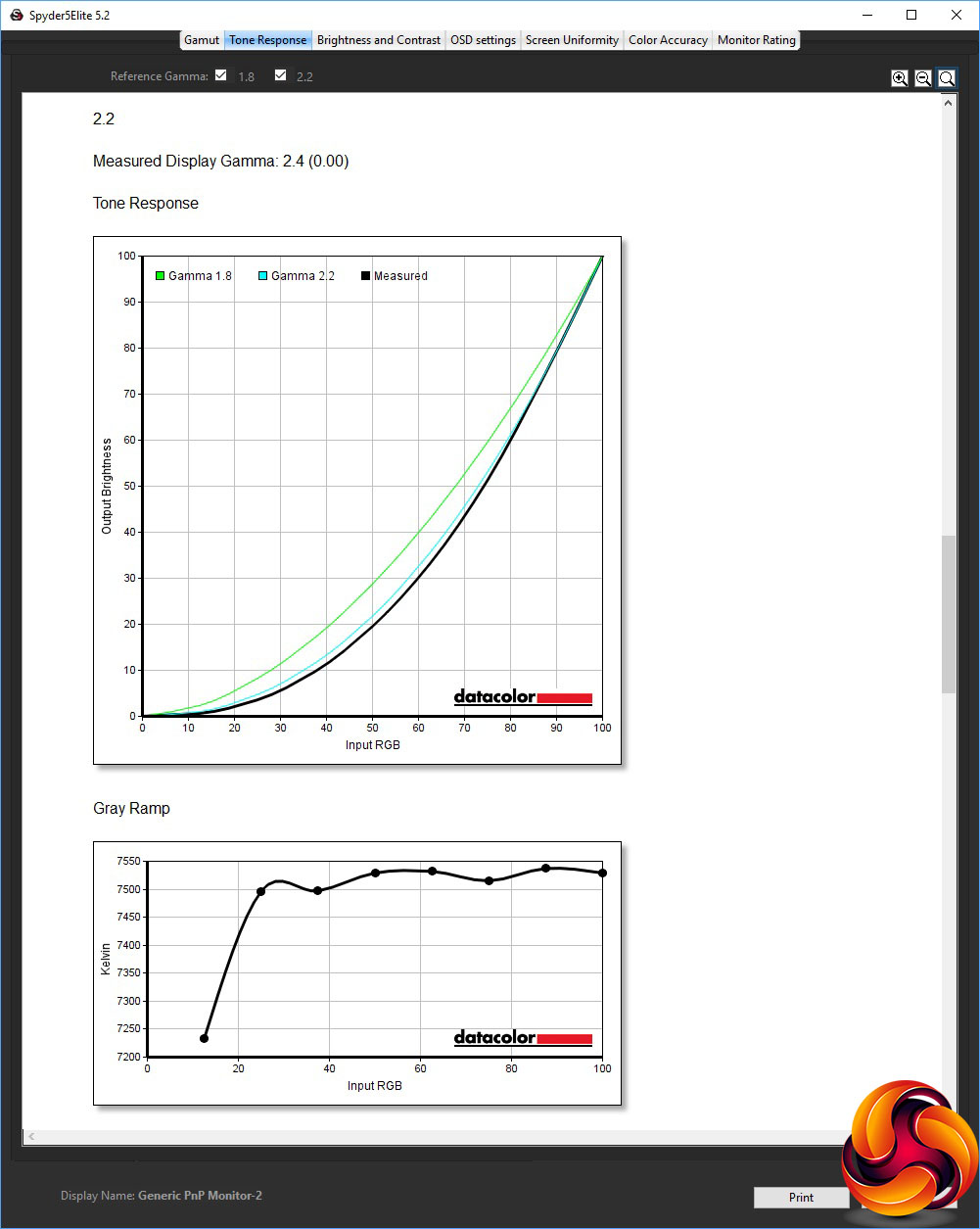 We only retested the gamma on the default 2.2 setting, and this remained 0.2 above the nominal value at 2.4.