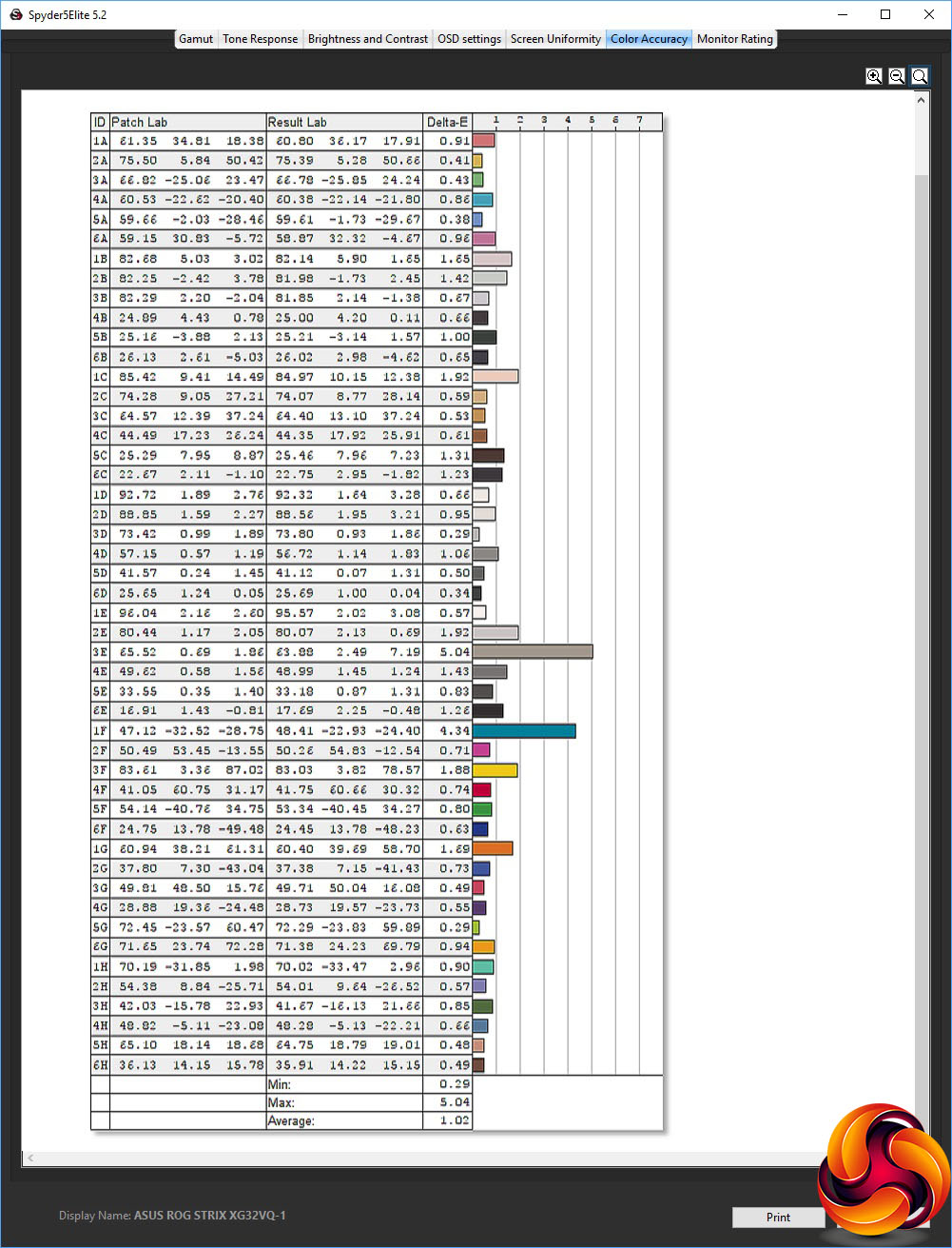 Colour accuracy has improved a little to an even more stunning 1.02 average variation.