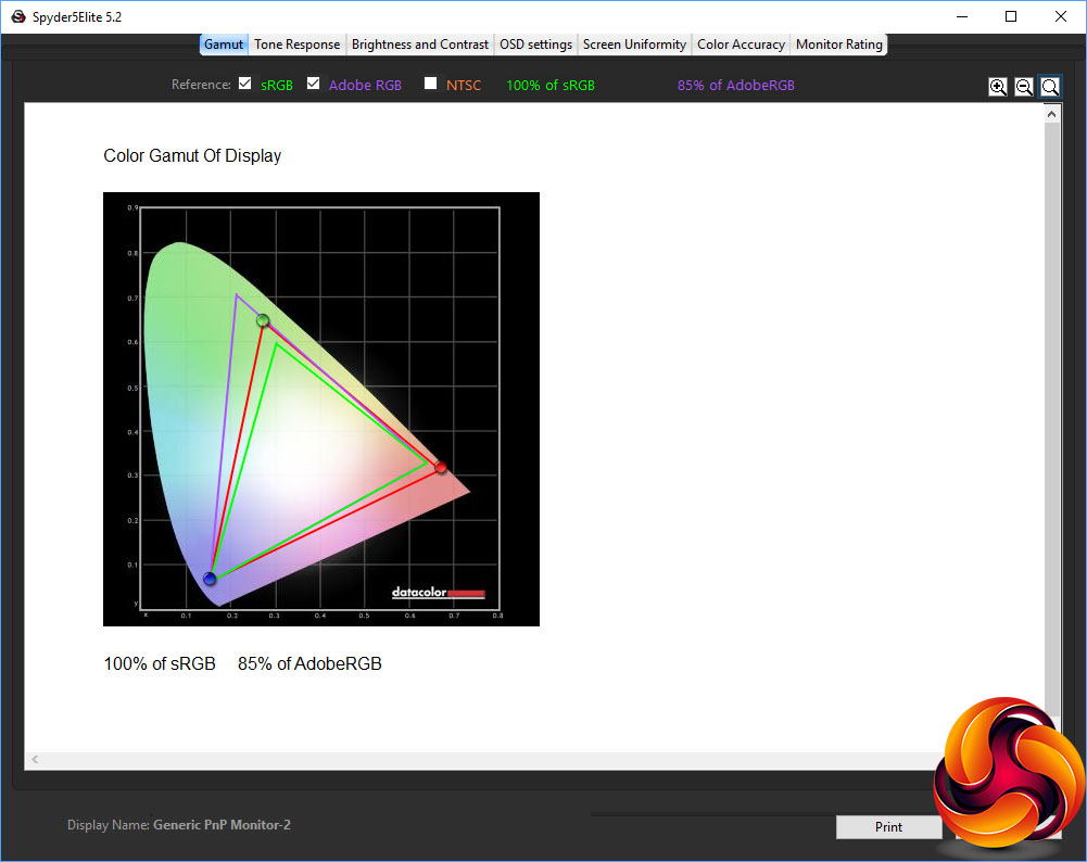 As you can see, the gamut has improved considerably, to reach 100 per cent sRGB (the highest the Spyder can record) and 85 per cent AdobeRGB, which is a much better result.