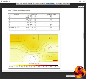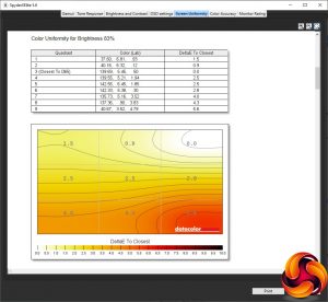 Our main test involves using a DataColor SpyderX Colorimeter to assess a display’s image quality. The device sits on top of the screen while the software generates colour tones and patterns, which it compares against predetermined values to work out how accurate the screen is.