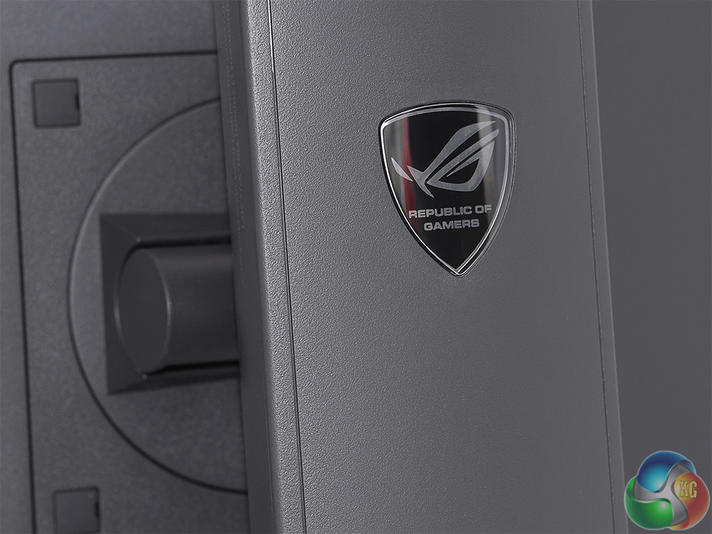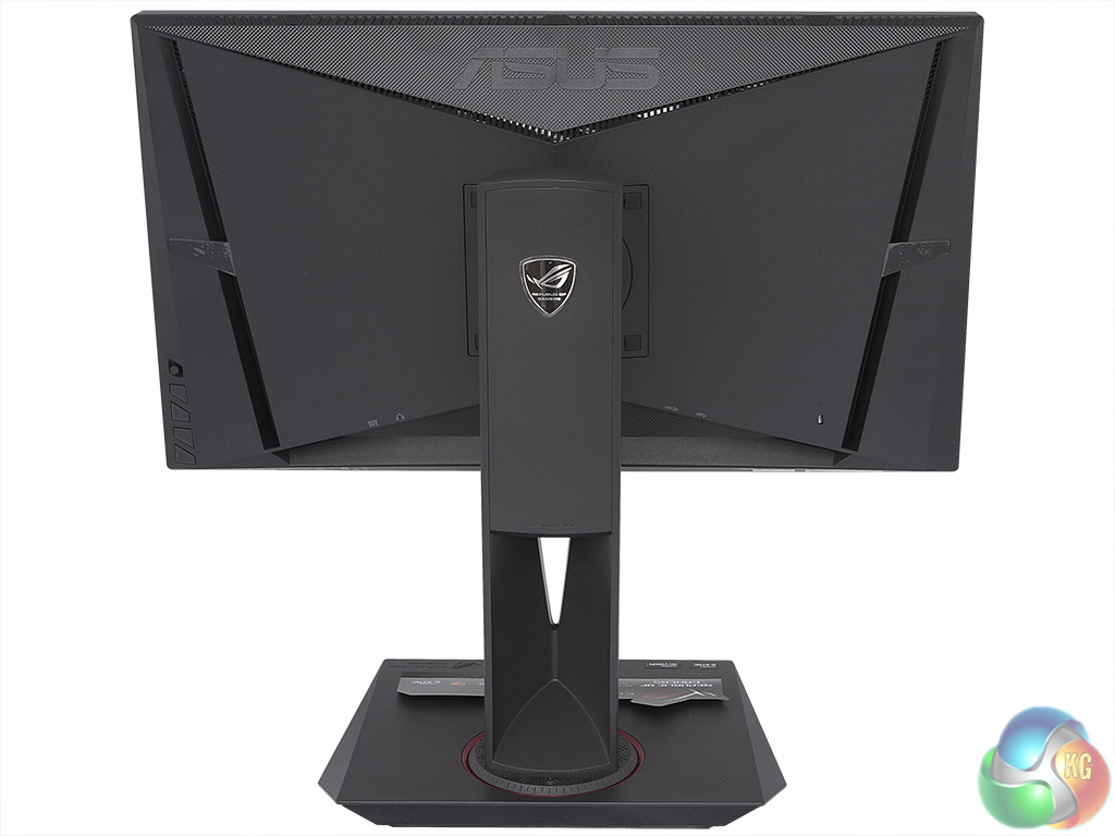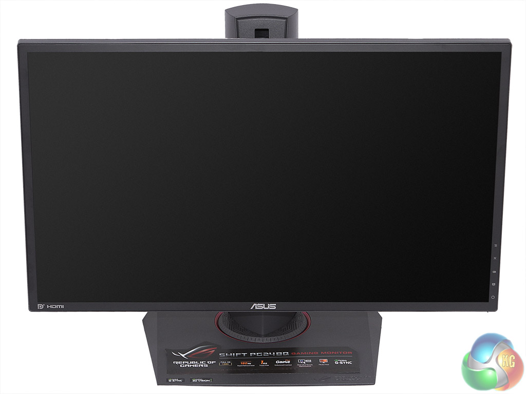 The monitor's base proudly boasts about its main features, including the 180Hz overclocked refresh, 1ms response rate, game modes, and NVIDIA G-Sync support. Fortunately, this is a removable sticker, so you can enjoy the monitor's graphite blackness. There's a flashing LED ring around the rotating base, too, for added bling.