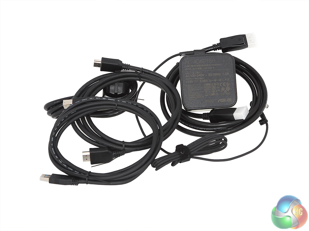 The Asus PG248Q comes with a decent selection of cables. Both full-sized DisplayPort and HDMI are included, plus an upstream USB cable for the monitor's built-in hub. The power supply is external, and uses the slightly less common C5 three-pin connection.