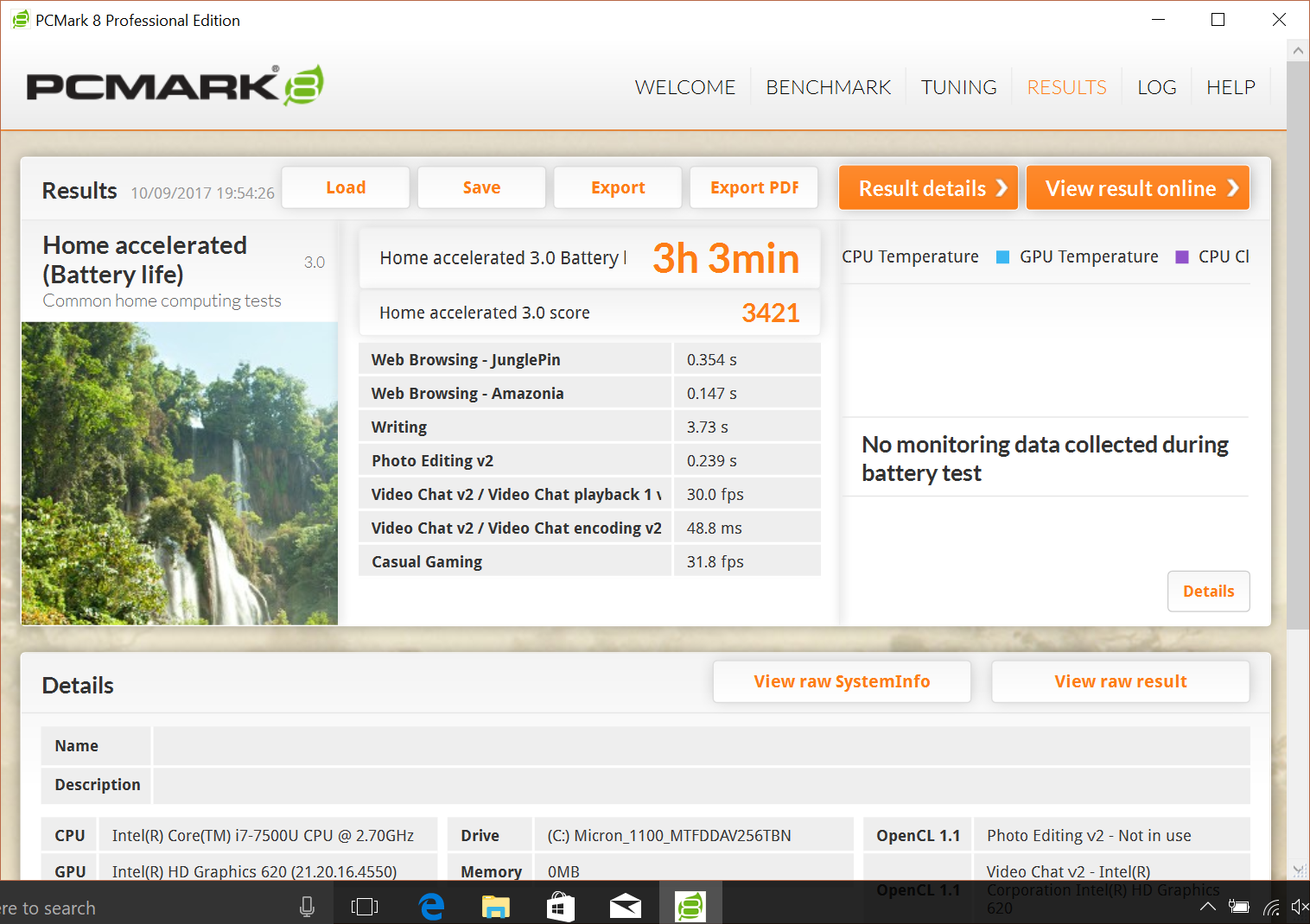 A very important consideration with a portable screen is what effect it has on the battery life of the notebook it's attached to. So we ran the Home portion of PC Mark 8 on the ASUS laptop in Battery Saver mode with the screen at 50 per cent brightness. Then we ran the same test again with the MB16AC attached, also at 50 per cent brightness. The results are shown below, compared to another couple of ultraportables we have recently reviewed.