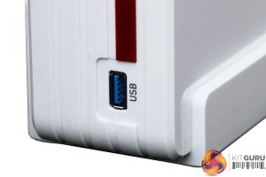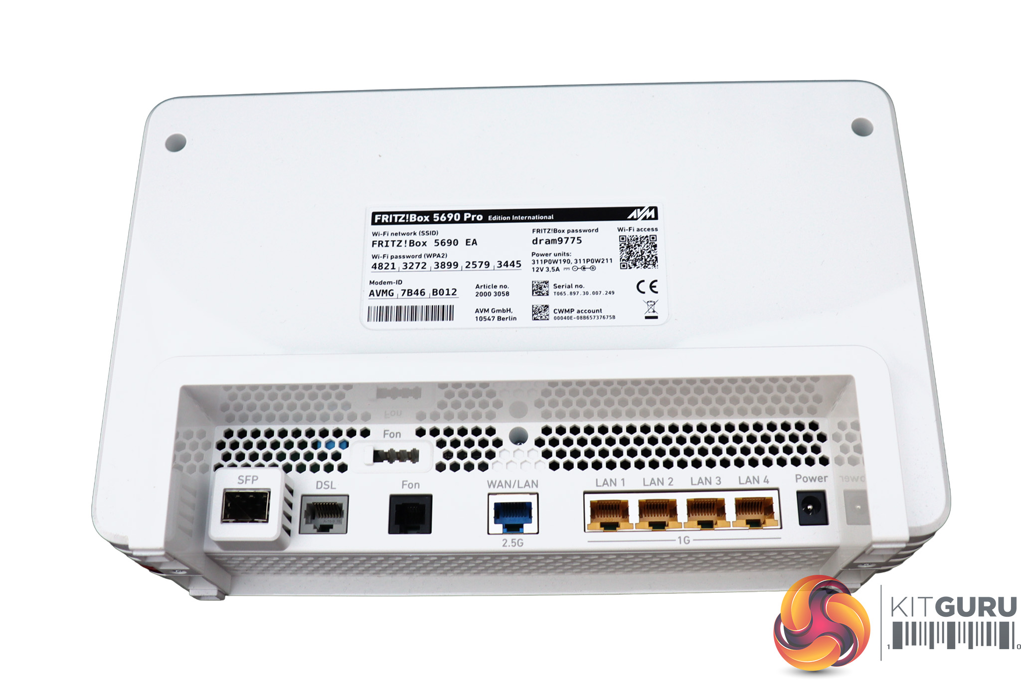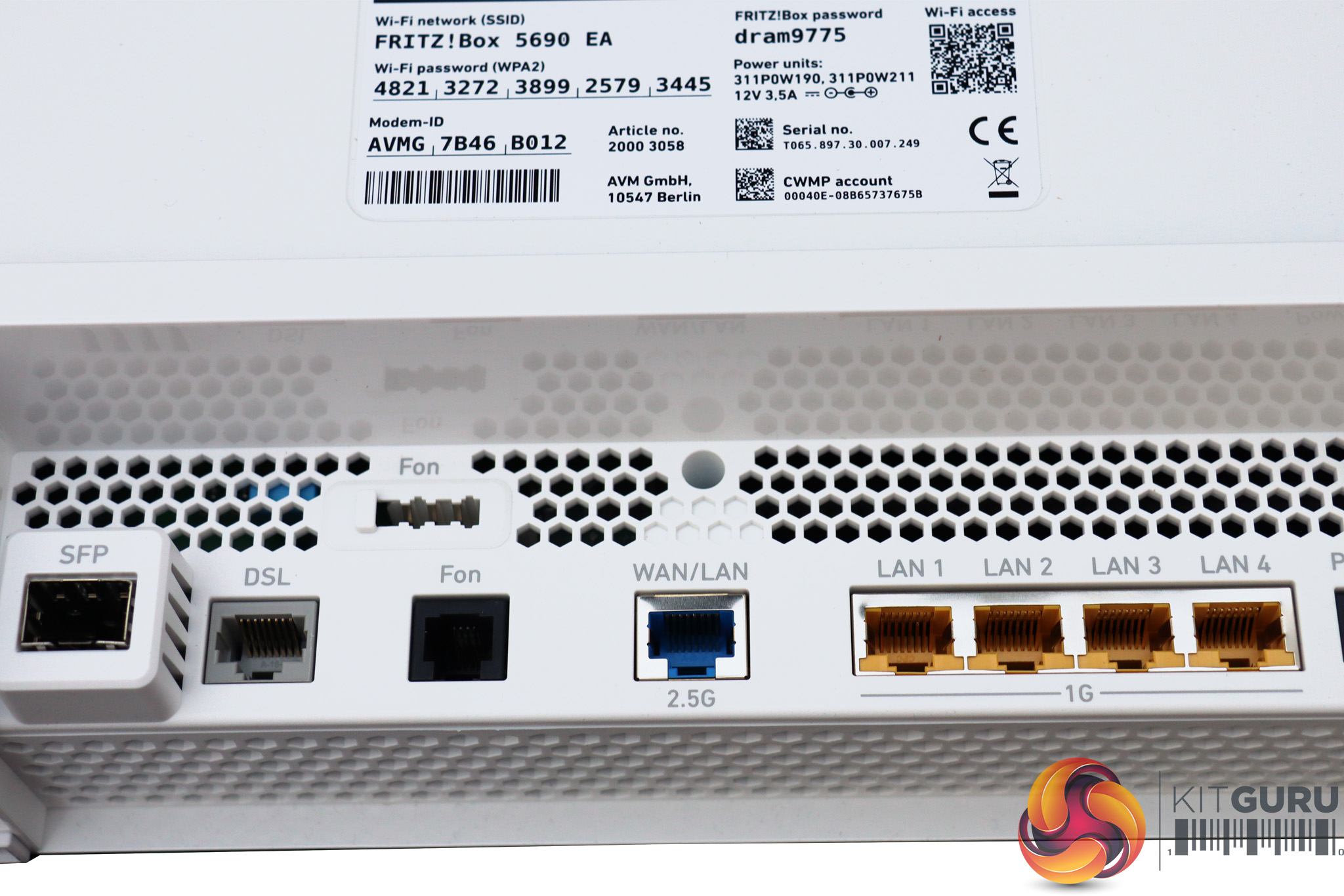Apart from the single USB 3.1 port on the side, all the ports are deeply recessed at the bottom. Starting from the left, there's the SFP port for using one of the two fibre optic adapters. Next along is a connector for copper wire DSL, and then an RJ11 analog telephony port. Above that is the German TAE telephony port, which probably won't be much use in the UK.