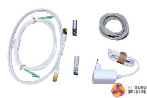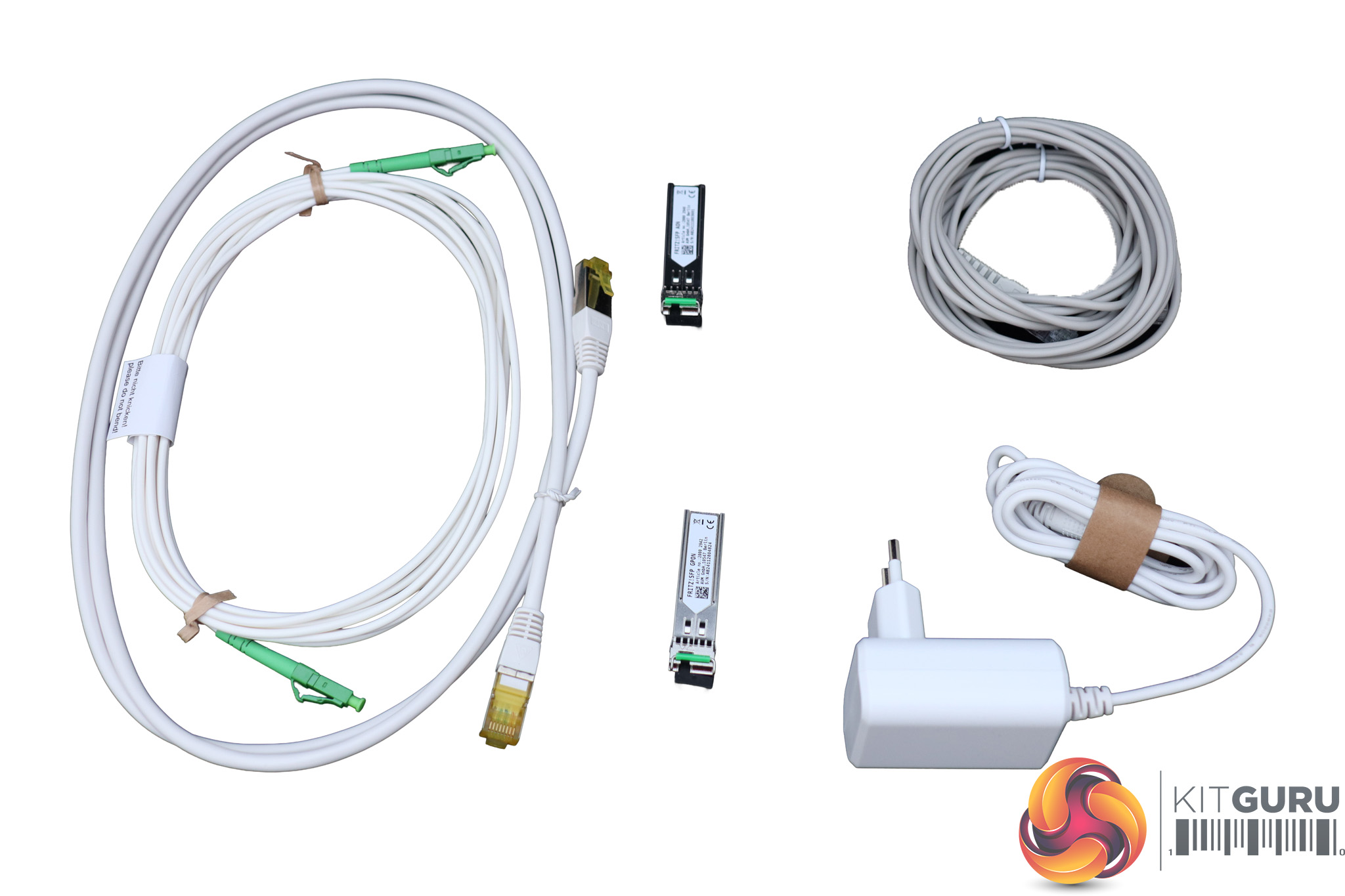 You get quite a lot in the box with the AVM FRITZ!Box 5690 Pro. Aside from the requisite power supply (ours was European, because our unit was sent from Germany), there is a full suite of cables included. You get SFPs for AON and GPON fibre optics, plus a 4m optical cable. Then there's a 4m DSL cable and a 1.5m LAN cable. In other words, you've got everything you need out of the box.