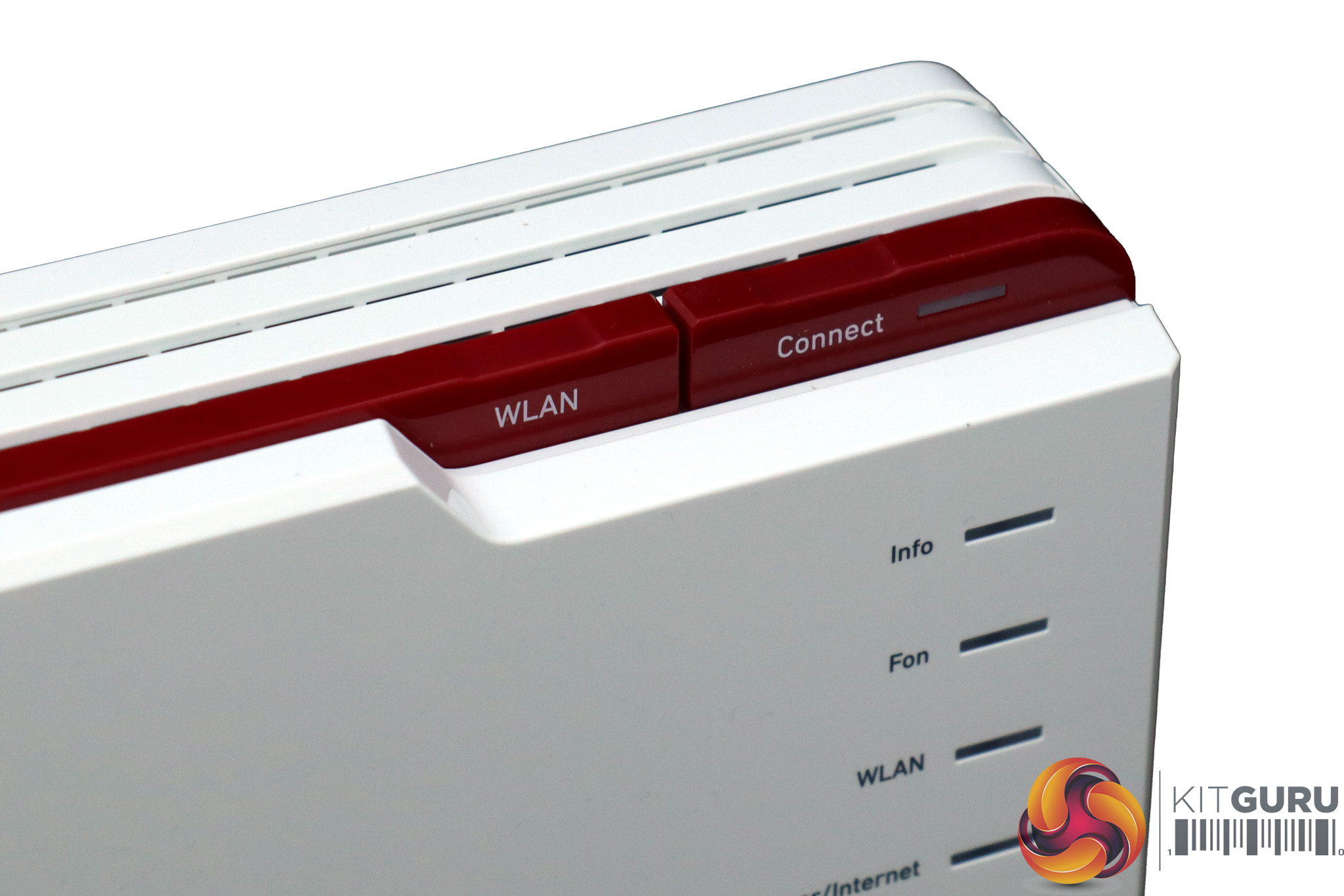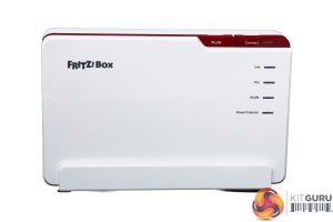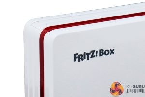 Whereas the 7690 has a wave-like roundedness, the 5690 Pro is more brick-like, although it still has the characteristic AVM FRITZ!Box flashes of red around the edges. There are status lights on one corner and at the top buttons for WPS device connection and turning the WLAN off and on.