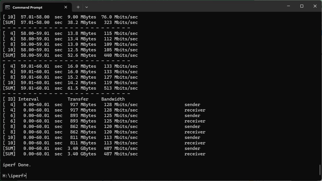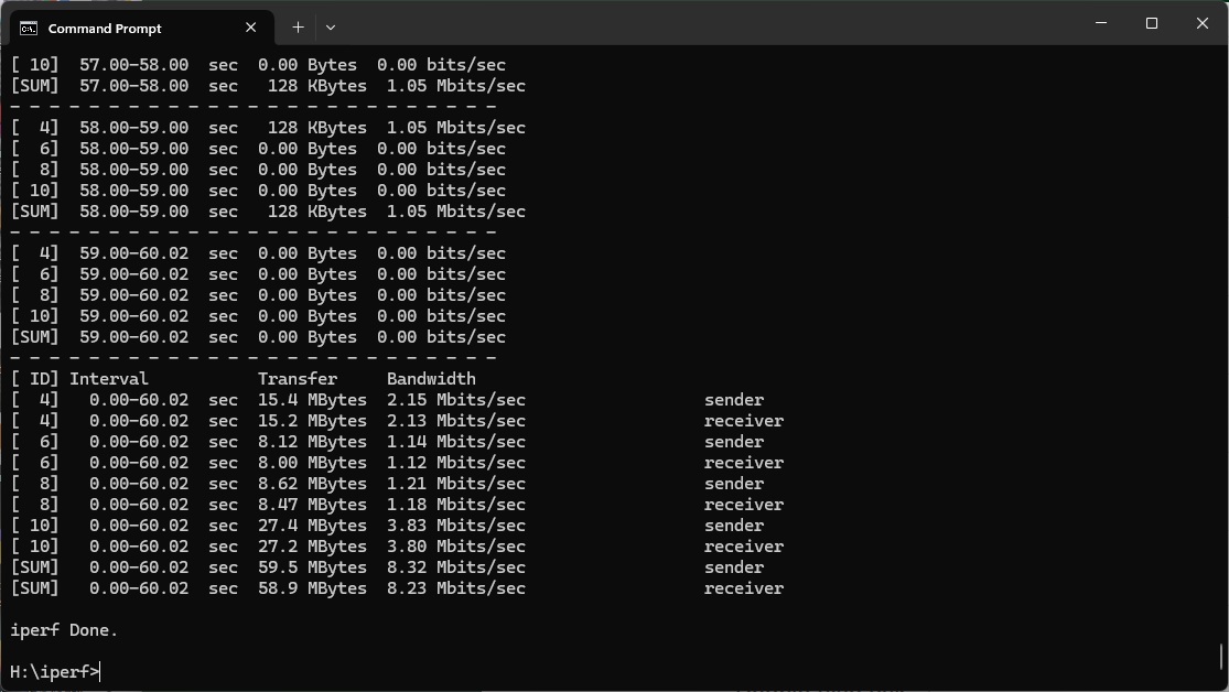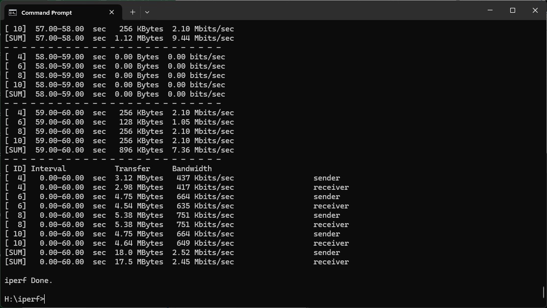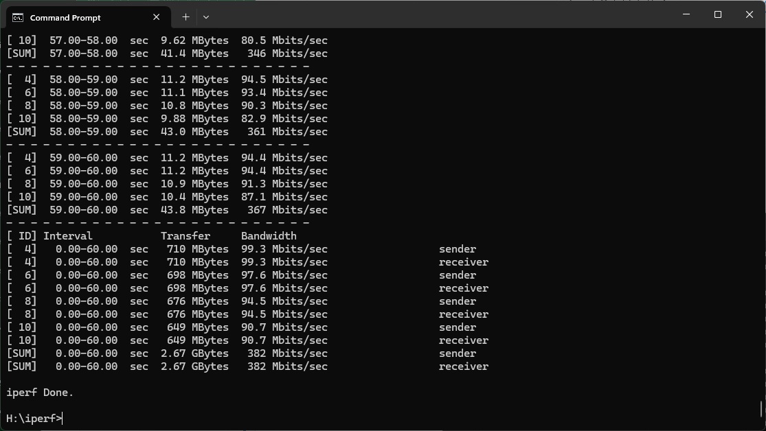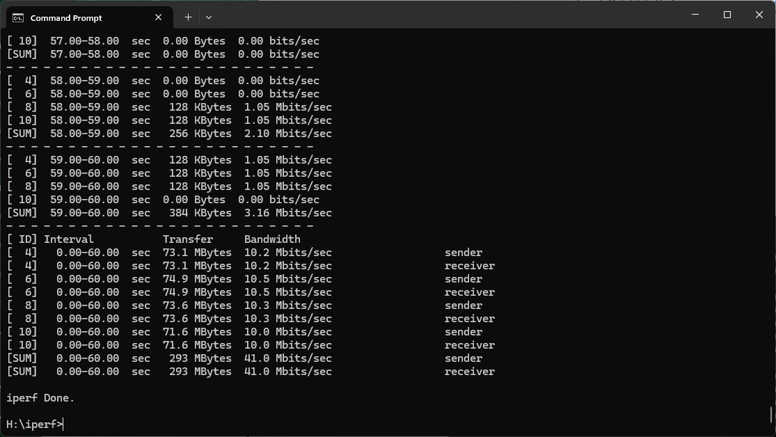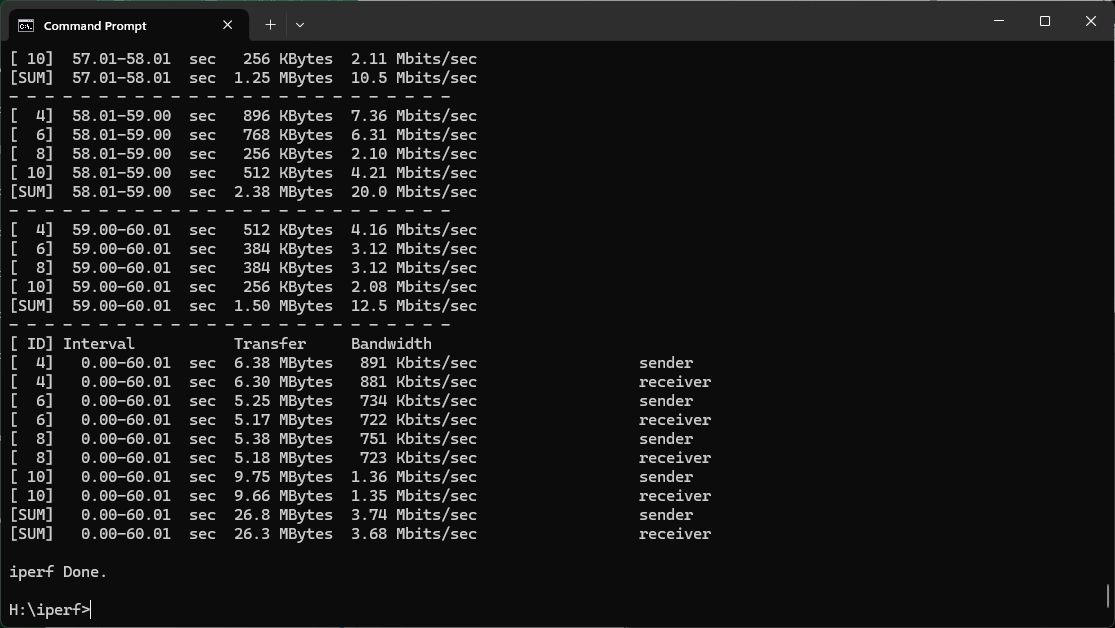 Even at 1m, the 5690 Pro's 43.4Mbits/sec is very slow.