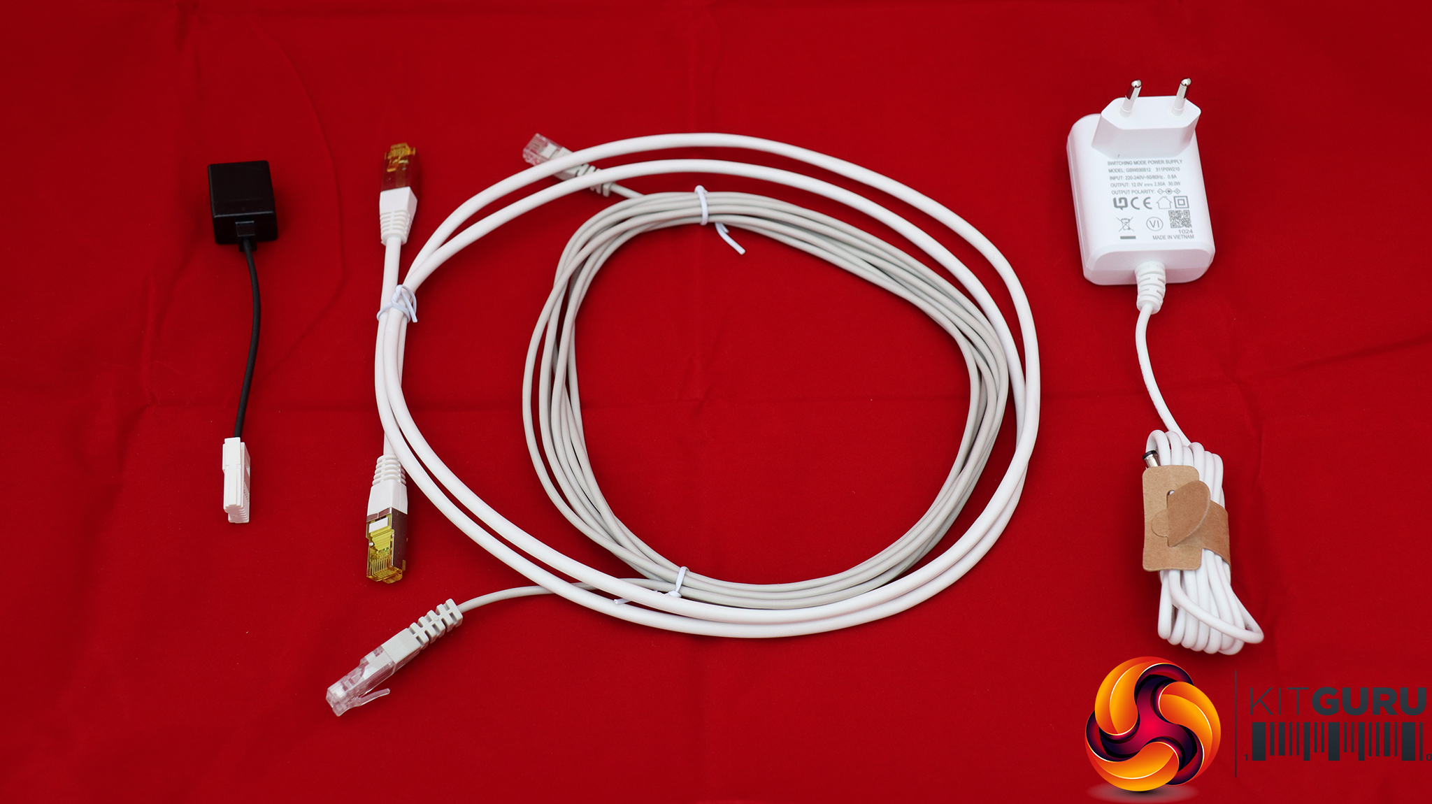 In the box is a 4m DSL cable with an adapter for a UK phone plug. There's a 1.5m LAN cable and power adapter, which curiously didn't come with an adapter for UK power (although our unit was shipped to us from Germany so units sold in the UK may have the right plug).