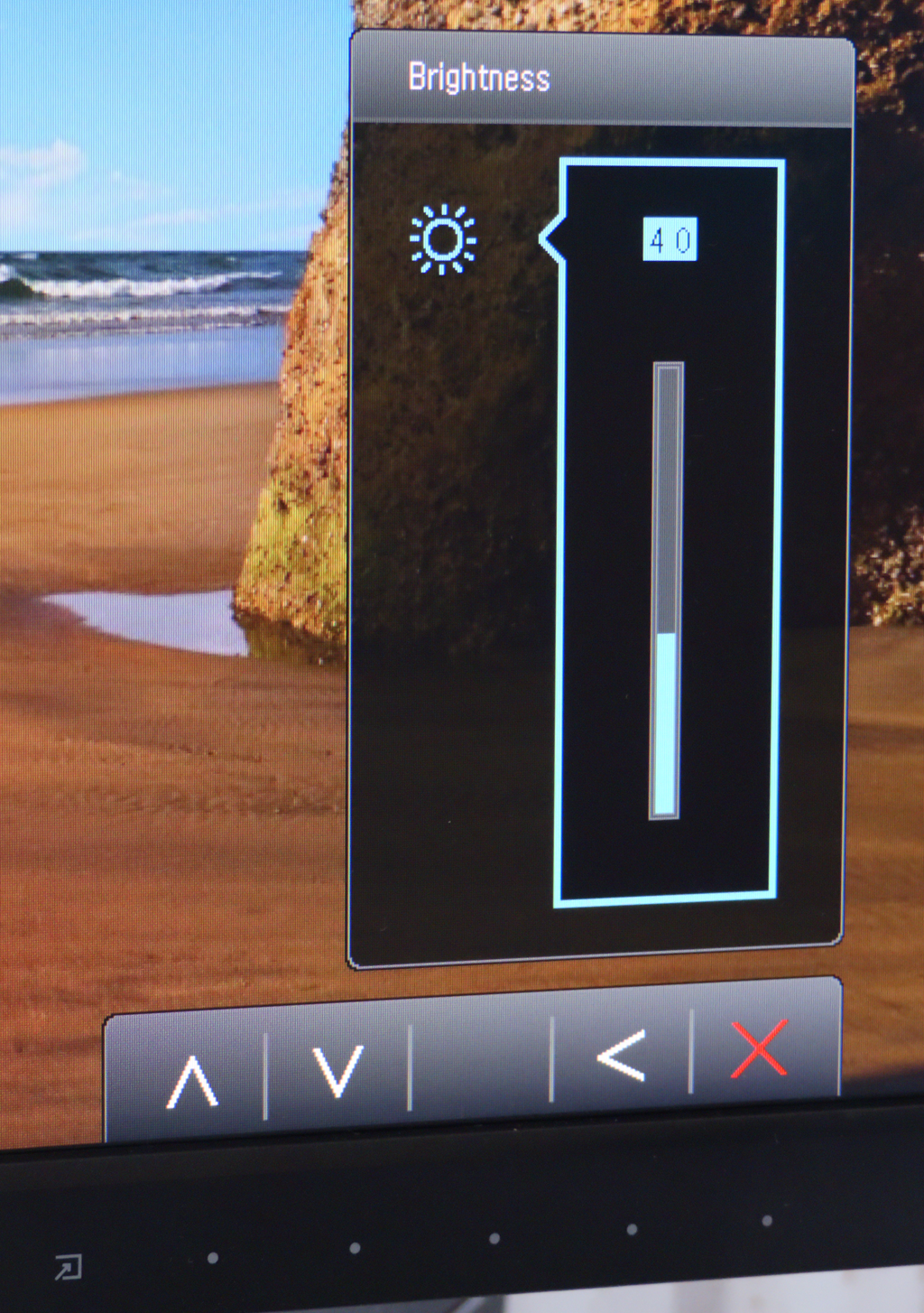 The row of buttons on the bottom of the screen are indicated by icons and grey dots. The button corresponding to the power button also doubles as the LED indicating whether the screen is on or not, although it's a little hard to press. You can cycle between inputs easily with the button next door, however.