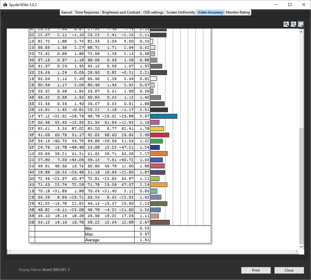 - The colour accuracy, expressed as a Delta E ratio, with a result under 3 being fine for normal use, and under 2 being great for colour-accurate design work.