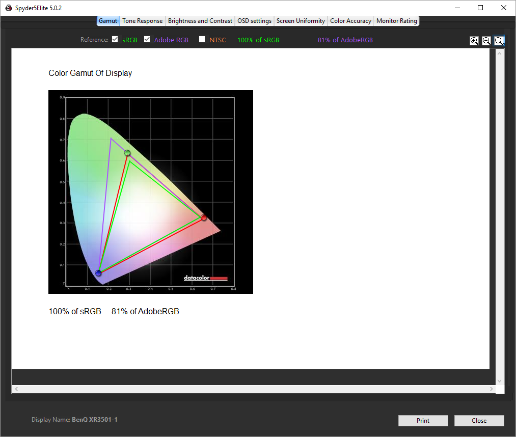 The colour gamut remains very good after calibration.