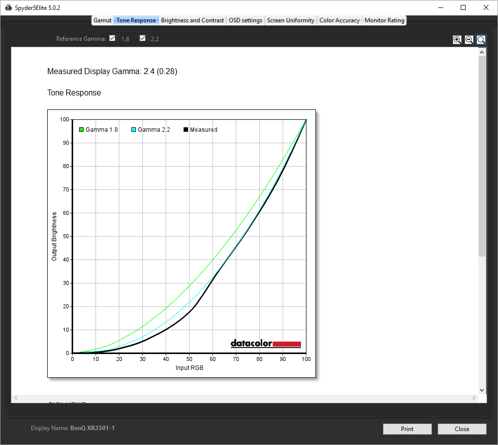 - The exact gamma levels, with a comparison against preset settings in the OSD.