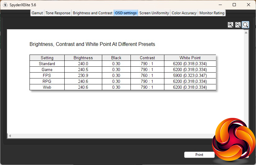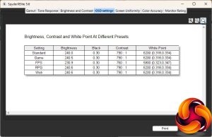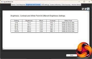 - A monitor’s contrast ratio at various brightness levels in the OSD.