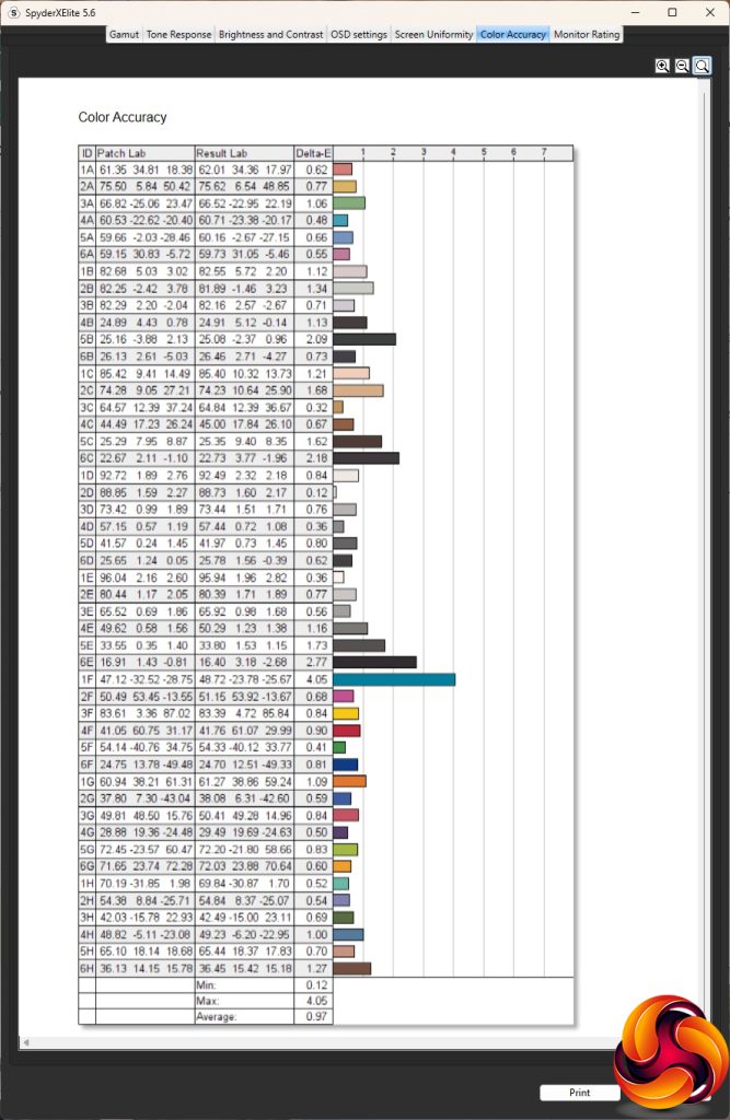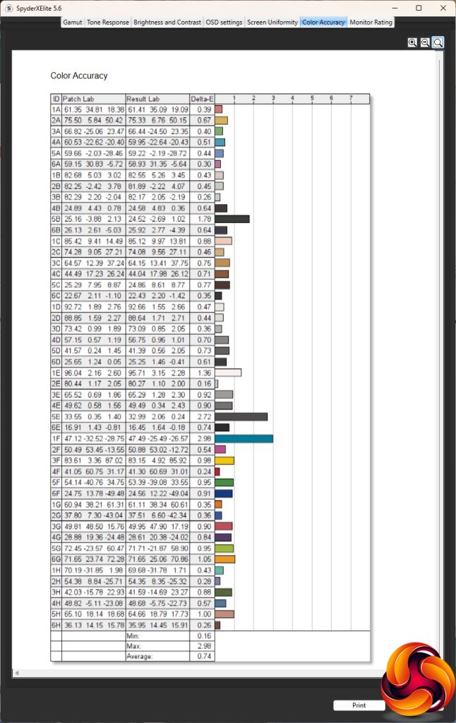 - The colour accuracy, expressed as a Delta E ratio, with a result under 3 being fine for normal use, and under 2 being great for colour-accurate design work.