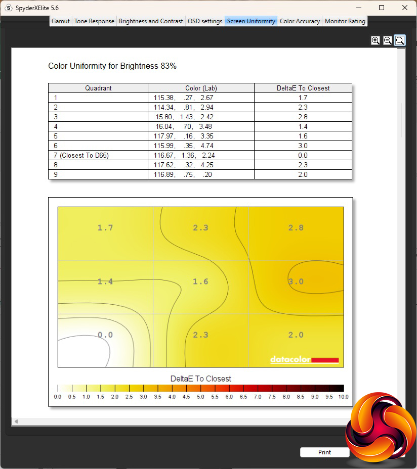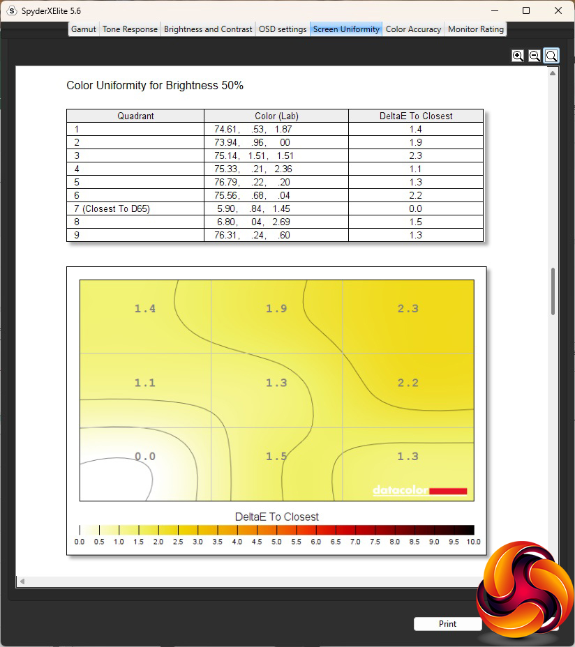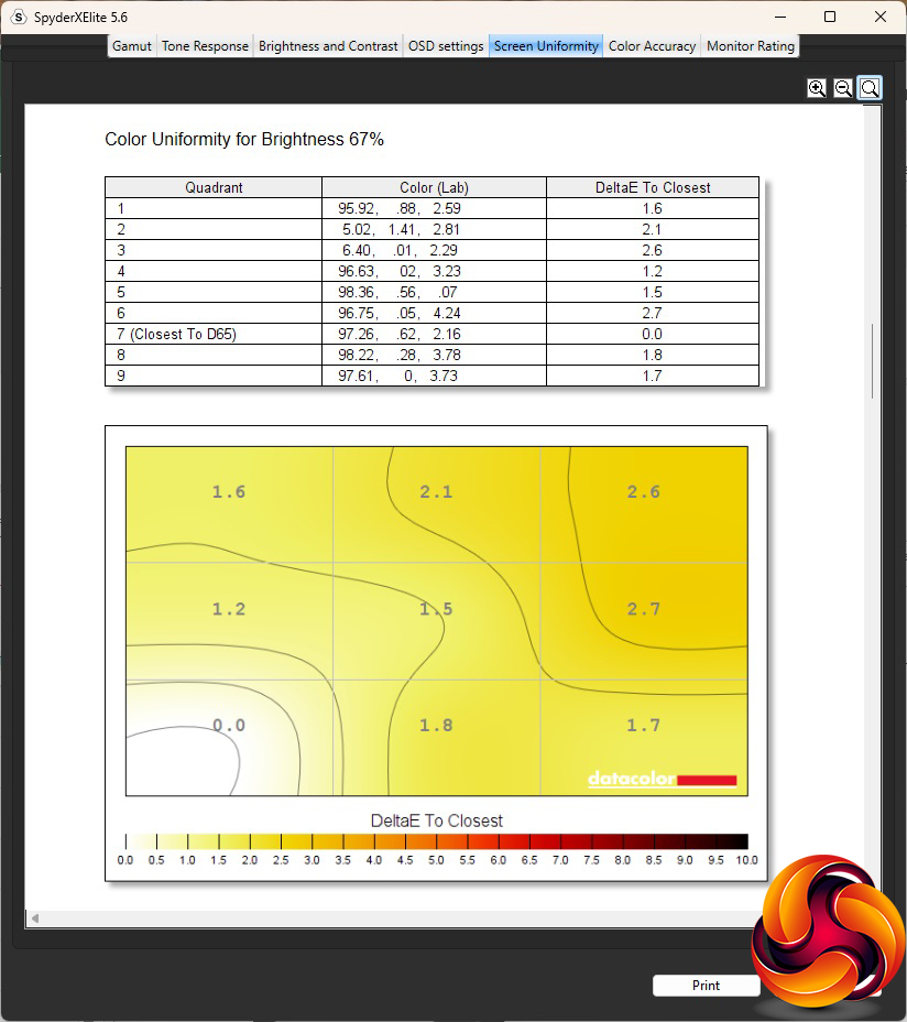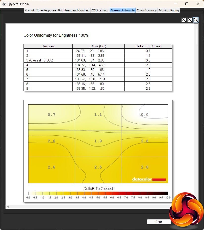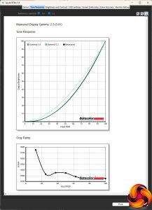 Our main test involves using a DataColor SpyderX Colorimeter to assess a display’s image quality. The device sits on top of the screen while the software generates colour tones and patterns, which it compares against predetermined values to work out how accurate the screen is.