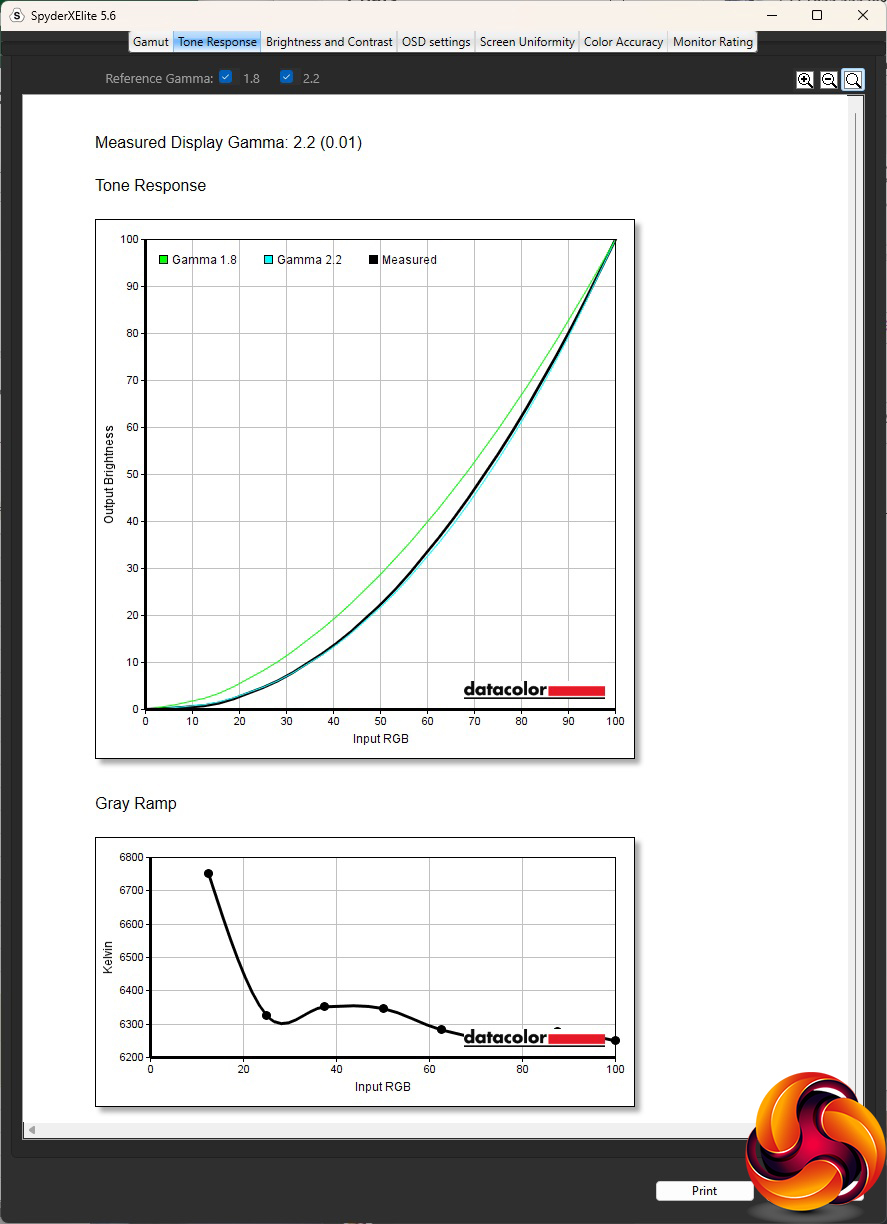 We only retested the default Gamma of 2.2, which also remained the same as it was before calibration.