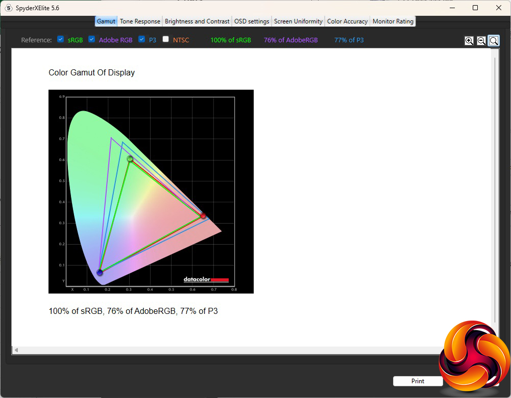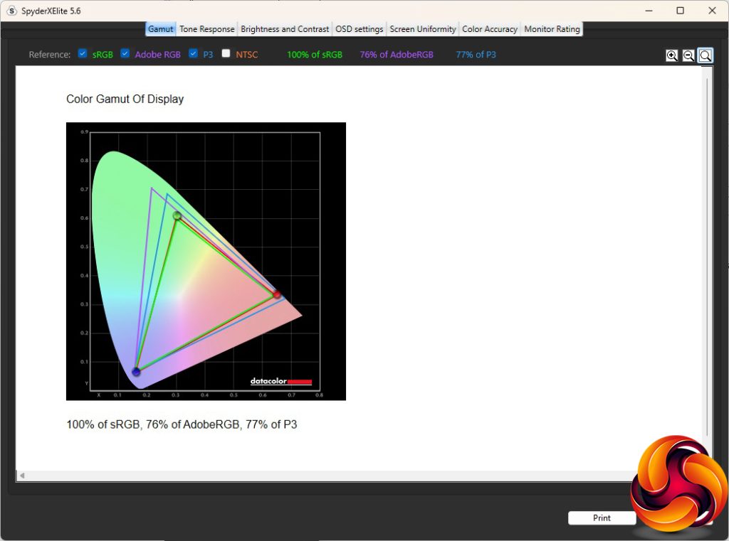 Things get off to a mixed start with the gamut. The 100 per cent sRGB is better than the specification, but 76 per cent AdobeRGB and 77 per cent DCI-P3 are both considerably behind the specification (91 and 90 per cent respectively).