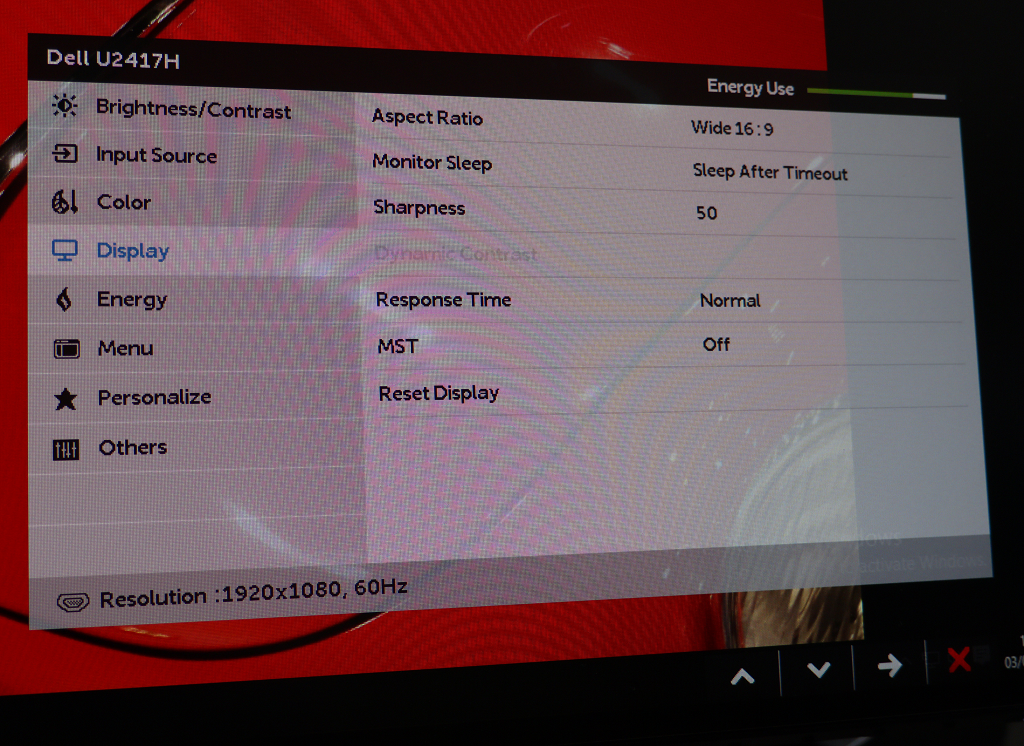 This is where you can switch the response rate from normal (8ms) to fast (6ms), and turn on MST so extra screens can be daisy chained from the DisplayPort output.