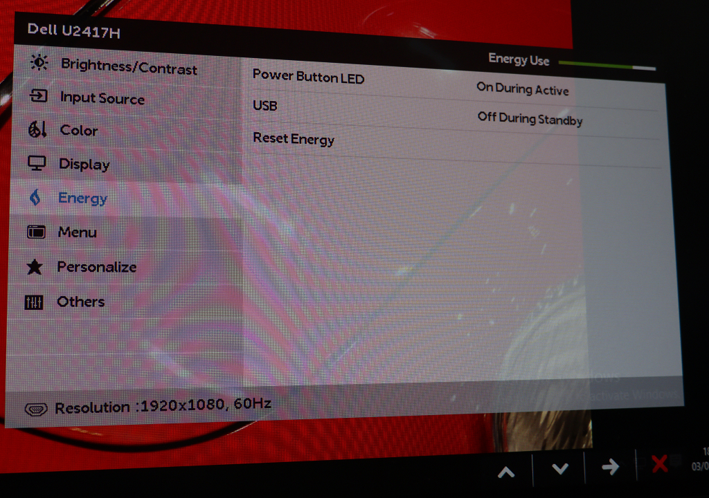 The meat of the settings are to be found in the main menu, with a particular neat inclusion being the energy use meter in the top right-hand corner of this menu. The initial screen shows general controls for brightness and contrast, followed by another route to changing the input.