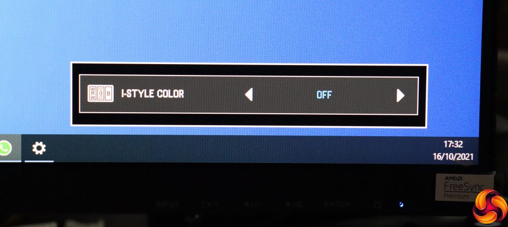 Next along are the I-Style Color modes. These are the primary presets, ranging from the default Off to Standard, Sport Game, FPS Game, Strategy Game, Text, and three user-configurable slots.