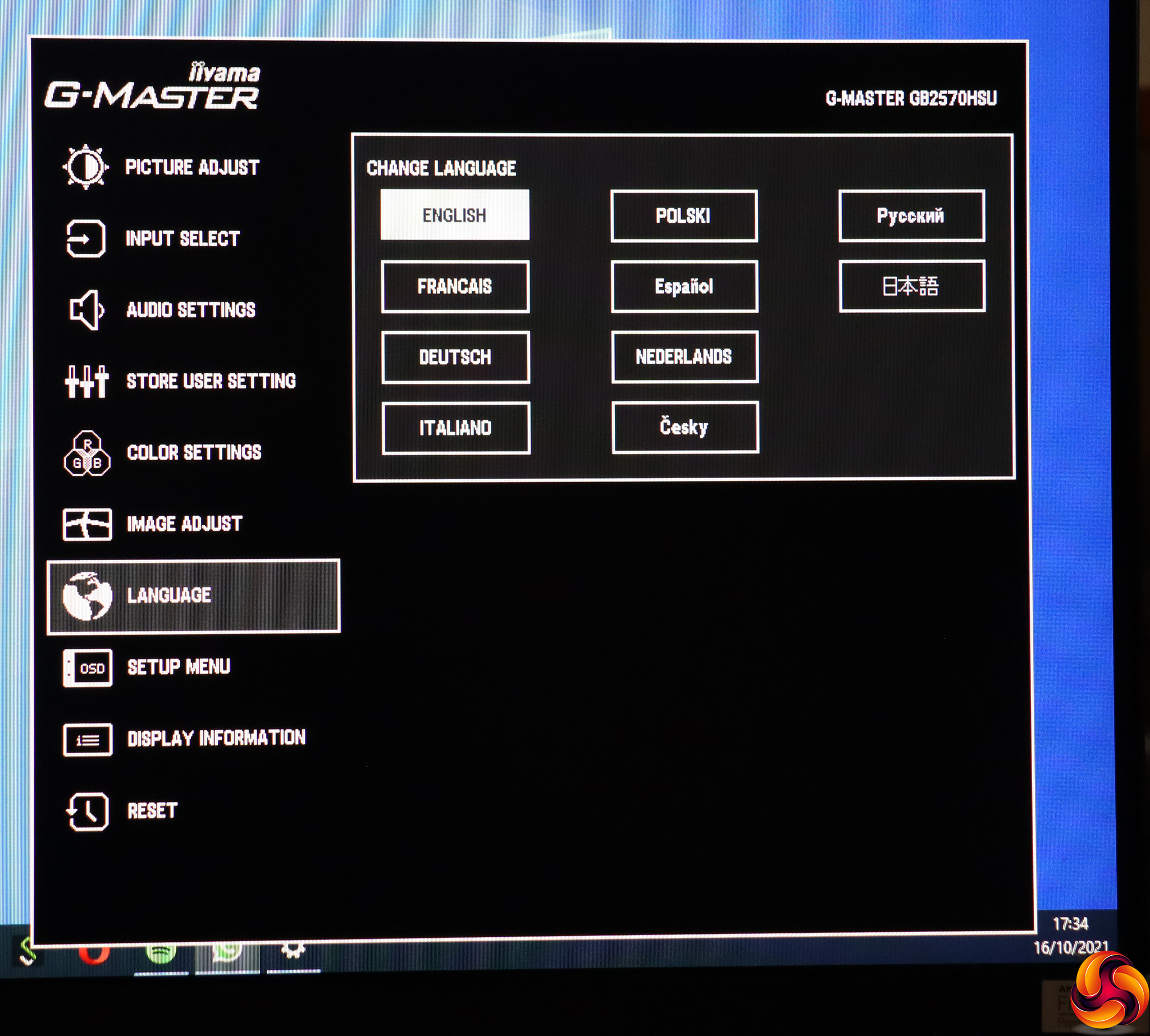 Setup Menu is where you configure the way the OSD appears, but also whether you see a logo when you turn the screen on, whether the power LED is on, and also (strangely in this context) it lets you enable and disable AMD FreeSync Premium adaptive sync.
