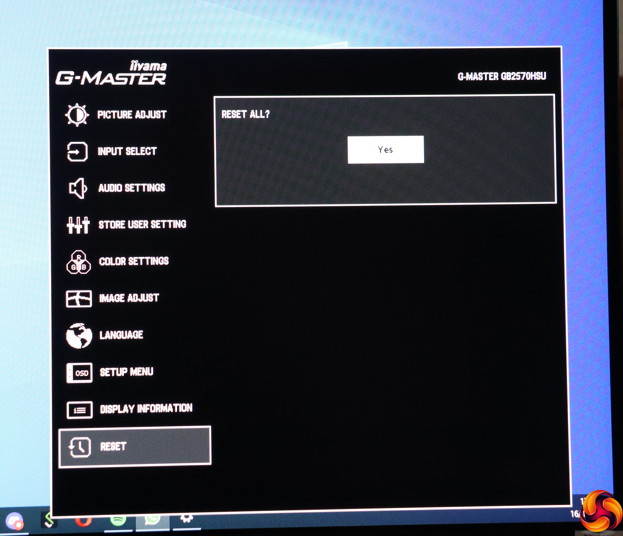 Image Adjust provides another route to the I-Style Color presets, but you can also enable Iiyama's X-Res Technology, which is an edge enhancement algorithm with Soft, Middle and Hard levels. You can separately adjust Sharpness between 1 and 6 with 3 the default. It's also possible to limit the RGB range shown. The Video Mode Adjust, greyed out in the above screenshot, let's you show the signal as various screen sizes and aspects instead of native resolution.