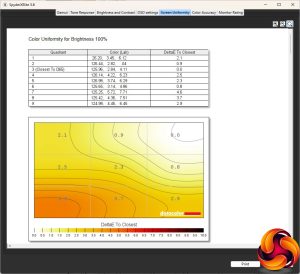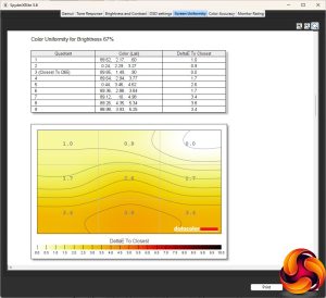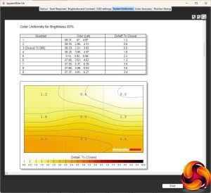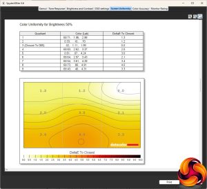 Our main test involves using a DataColor SpyderX Colorimeter to assess a display’s image quality. The device sits on top of the screen while the software generates colour tones and patterns, which it compares against predetermined values to work out how accurate the screen is.