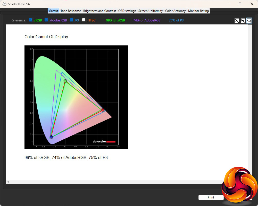 The colour accuracy is superb out of the box, with a 0.63 average deviation. Only one blue shade appeared to be dramatically deviant. But as always, we fired up the SpyderX again to see if calibration could improve things any further. The only adjustment suggested during the process was dropping the brightness level by 1 per cent.