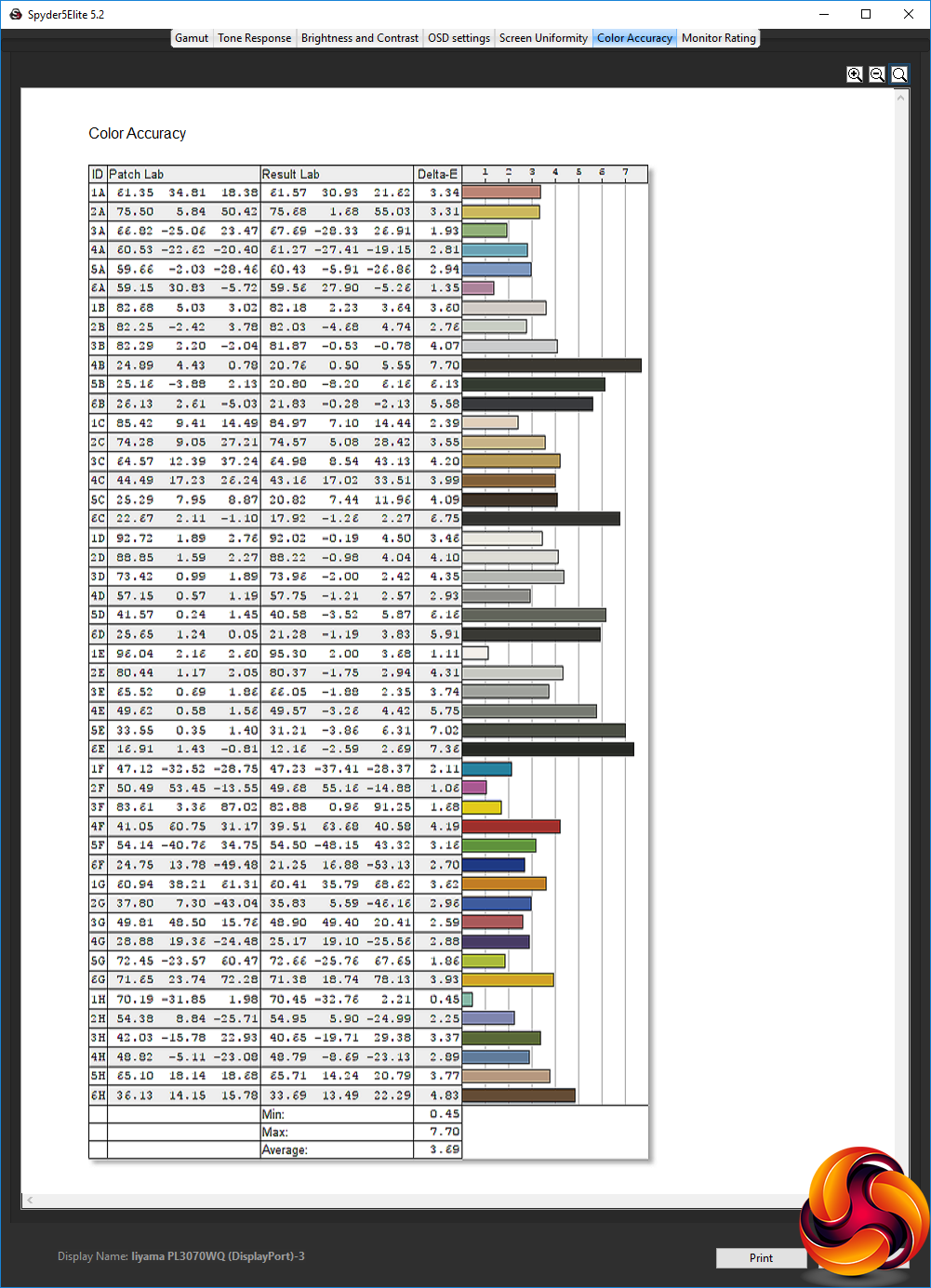 - The colour accuracy, expressed as a Delta E ratio, with a result under 3 being fine for normal use, and under 2 being great for colour-accurate design work.
