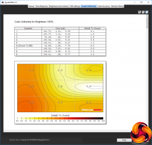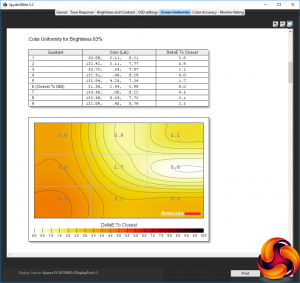 Our main test involves using a DataColor Spyder Elite 5 Colorimeter to assess a display’s image quality. The device sits on top of the screen while the software generates colour tones and patterns, which it compares against predetermined values to work out how accurate the screen is.