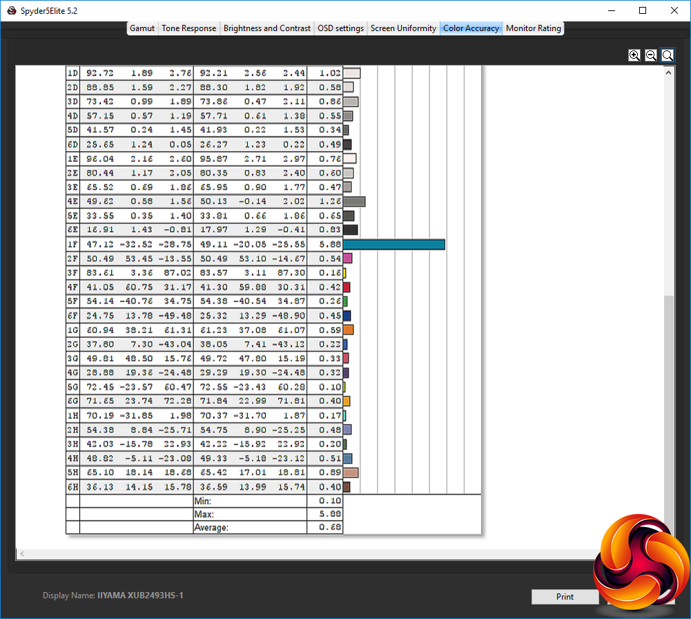 - The colour accuracy, expressed as a Delta E ratio, with a result under 3 being fine for normal use, and under 2 being great for colour-accurate design work.