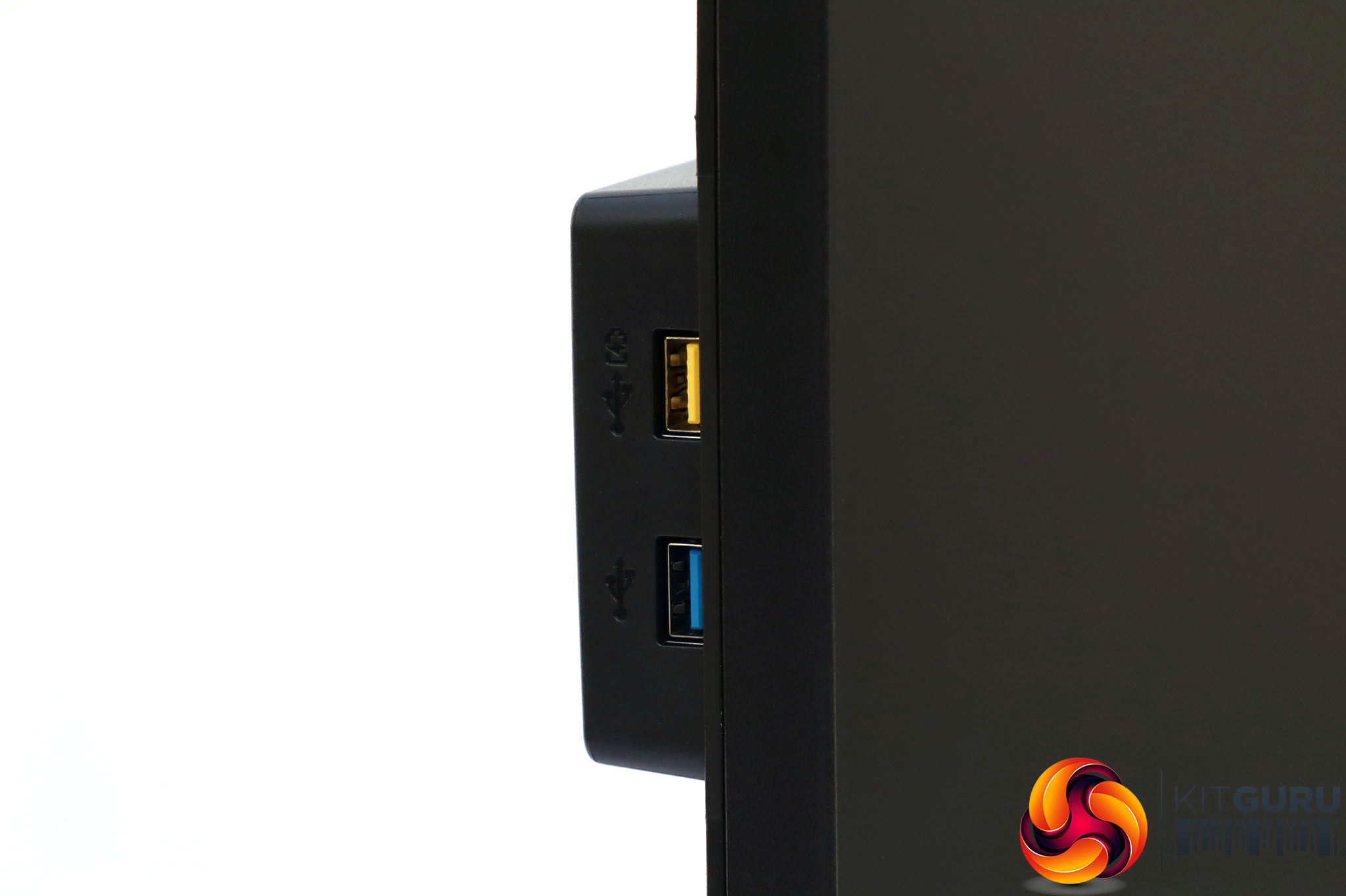 Finally, the USB upstream port is on the underside at the far end. This drives two USB 3.0 ports on the left-hand side, one of which supports charging when the monitor is off.