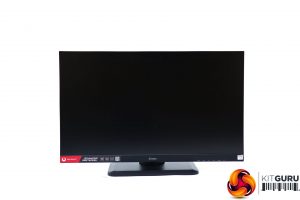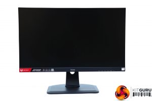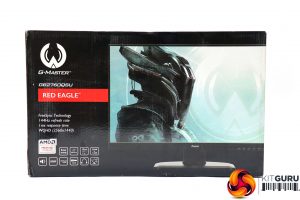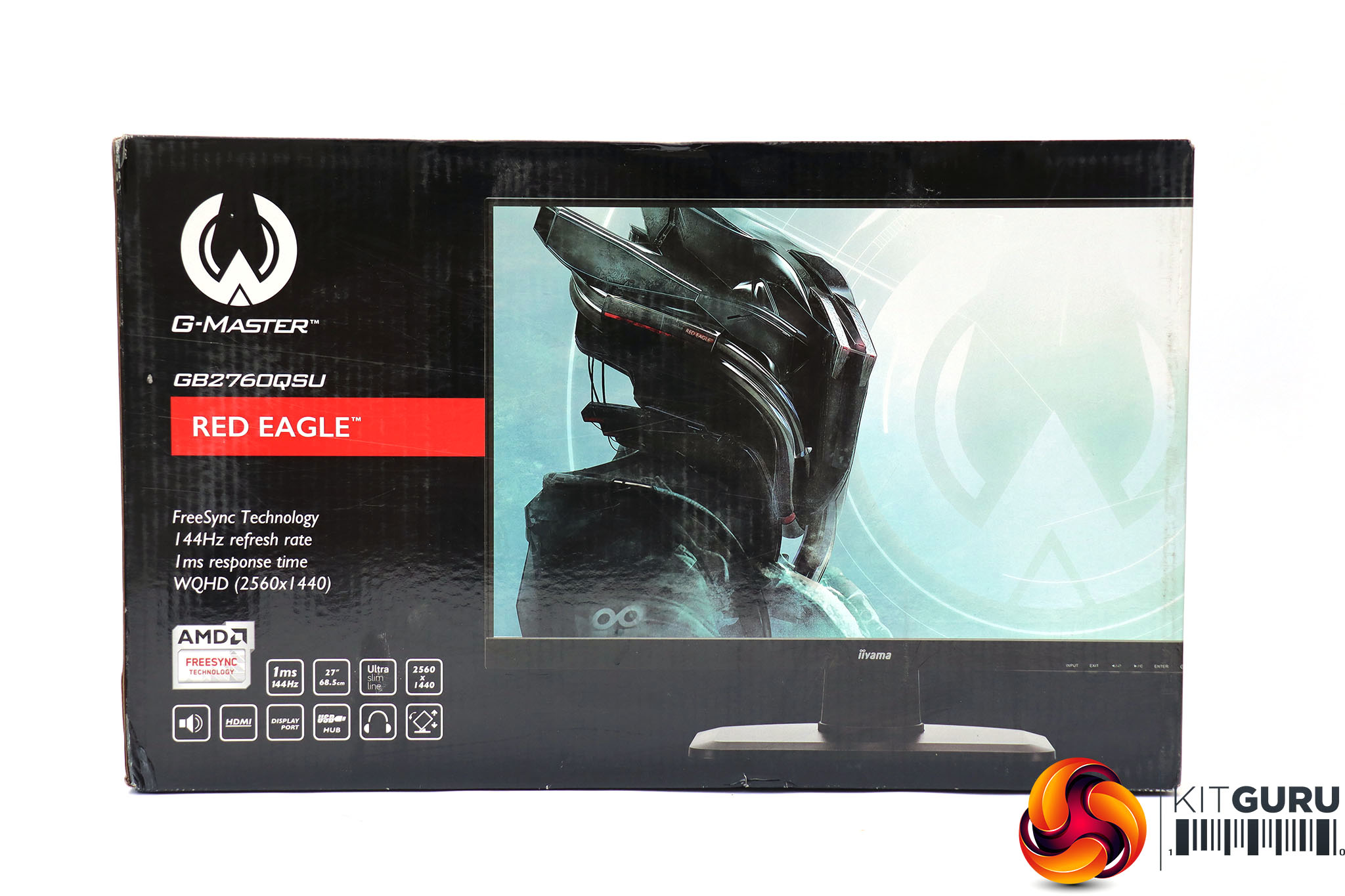 The Iiyama Red Eagle G-MASTER GB2760QSU-B1 comes in a considerably more exciting box than its professional siblings, sporting a the head of a futuristic power-armoured figure instead of a picture of the monitor.