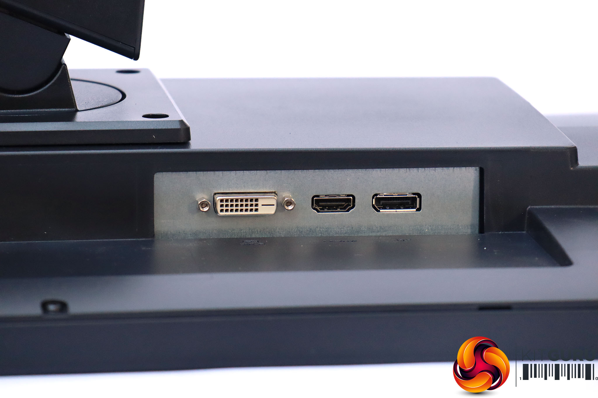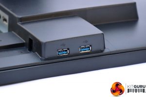 Next to the power socket are audio minijacks for headphones and analog input (presumably for when you're using the DVI connection). We would always prefer the headphone jack in a more convenient location than this. Next along, the other side of the stand, are the video connections, including DVI, HDMI and DisplayPort. Finally, there's the upstream USB 3.0 port.