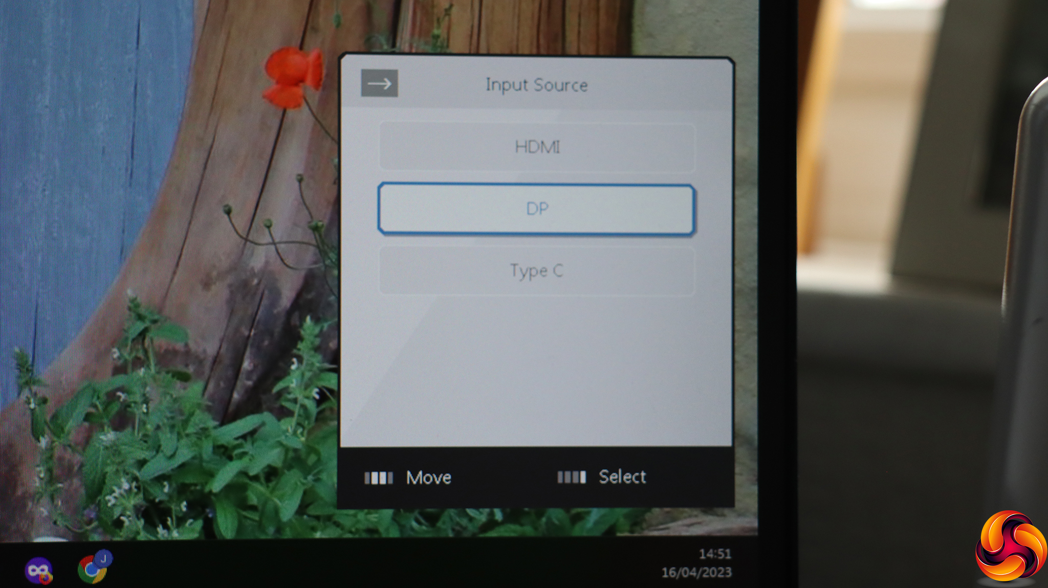 Pressing the next button along, represented by an arrow pointing right, let's you choose between the three video inputs – HDMI, DisplayPort or USB Type C.