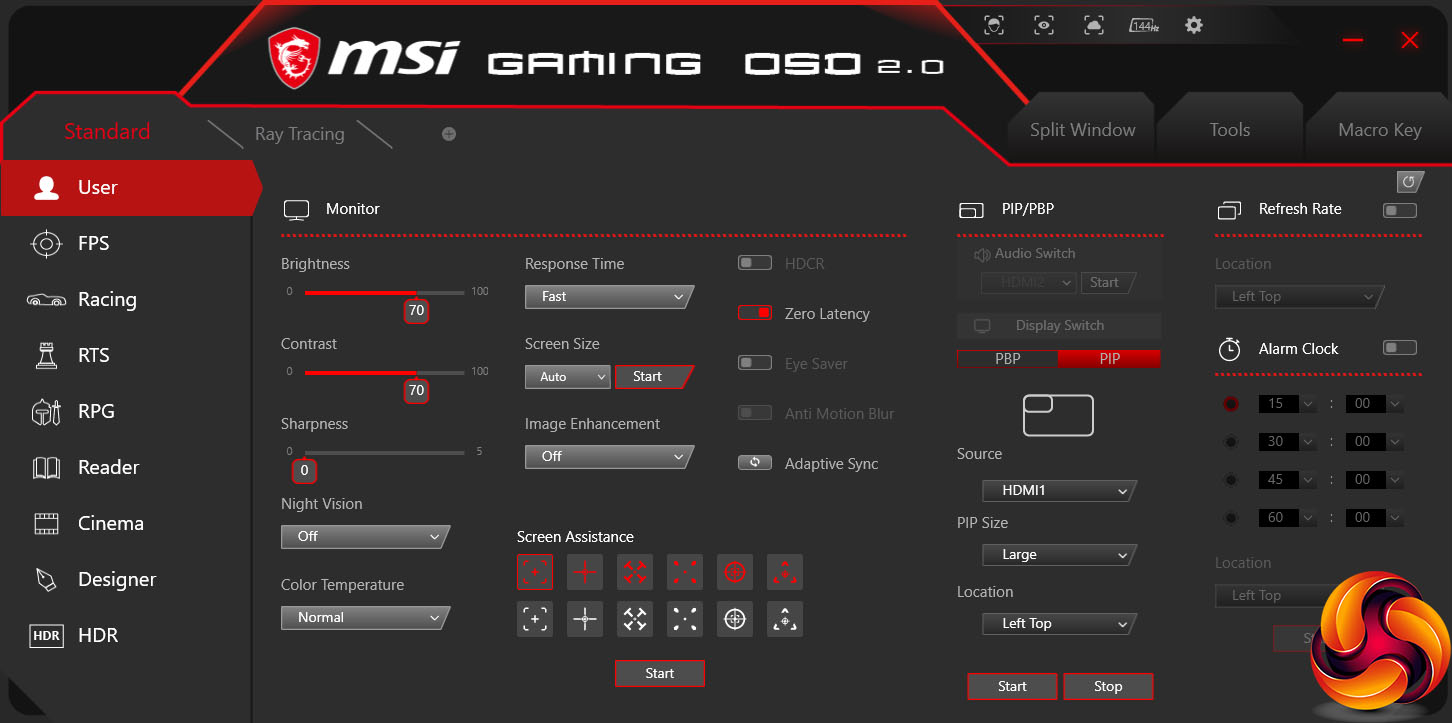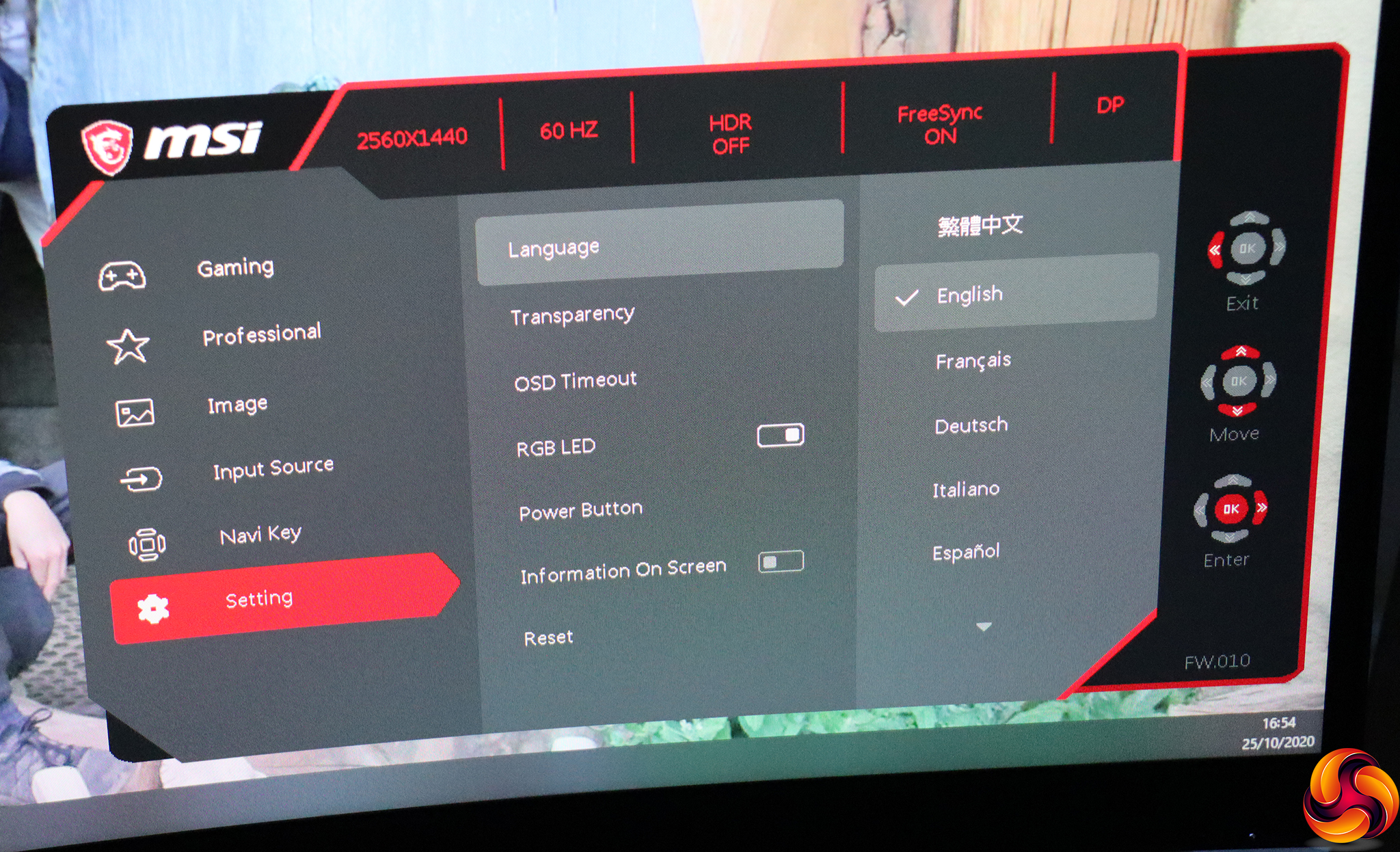 With USB upstream connected to the host PC, you can also install the MSI Gaming OSD software and use that to configure the screen from the comfort of your computer keyboard.