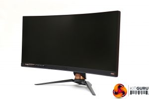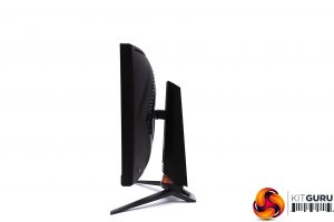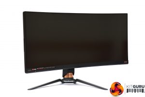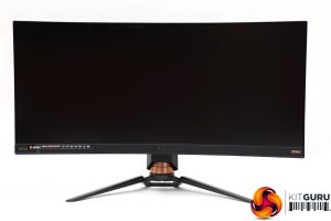 The 1800R curve is reasonably subtle, but still gives a screen this wide a “wraparound” sense where the edges are essentially in your peripheral vision, which is good for a sense of immersion. There are areas of copper finishing on the stand, which sets things back onto a classier footing.