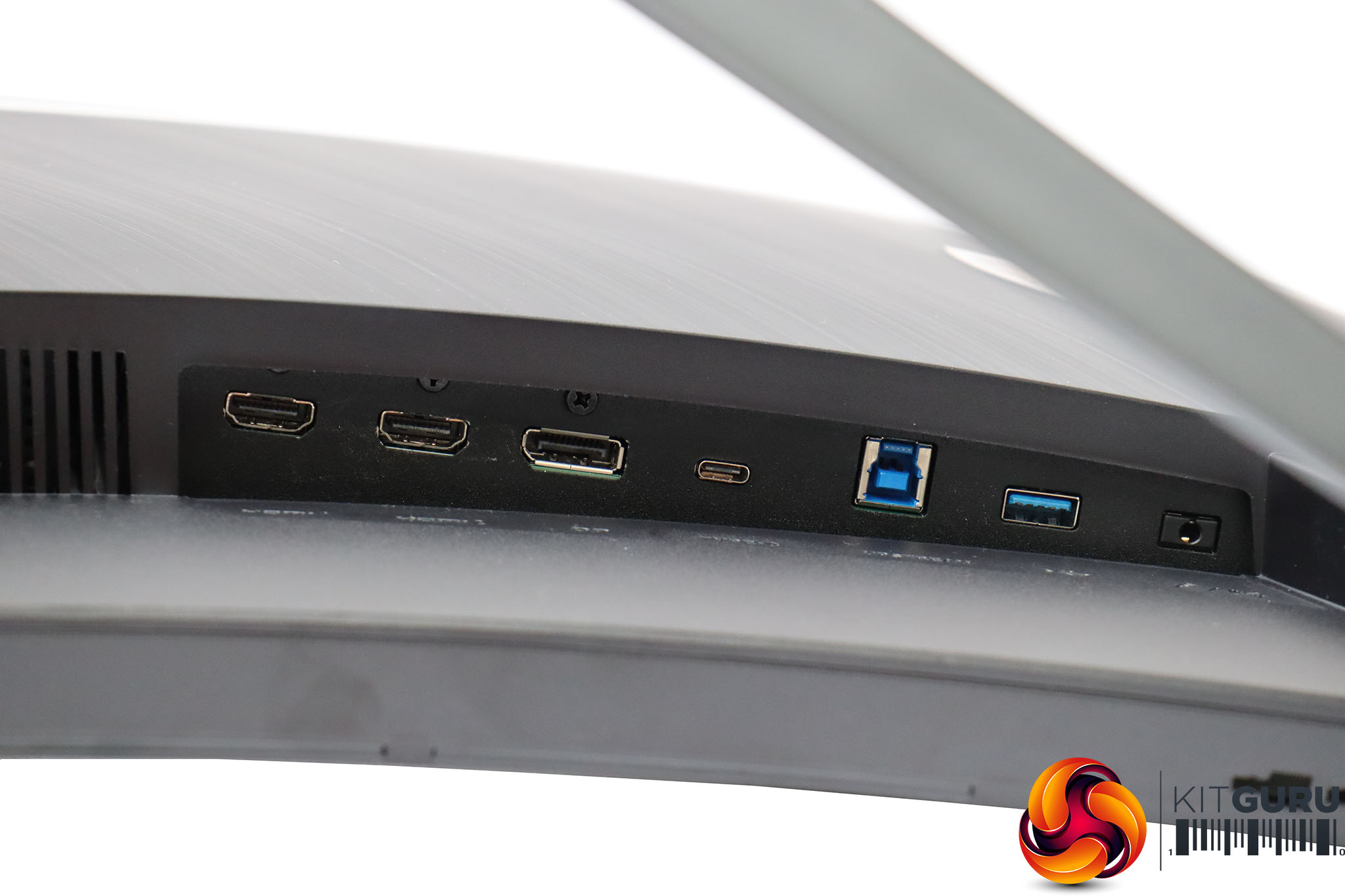 The port allocation is decent and cutting edge. The positioning is also well thought out. On the back can be found a single DisplayPort 1.4 connection plus two HDMI 2.0 ports. There's also USB Type C for video connectivity. There's a USB 3.2 Gen 1 Type B (essentially USB 3.0) for the upstream from your PC, plus a single USB 3.2 Gen1 Type A, and a minijack for routing analog audio from your PC.