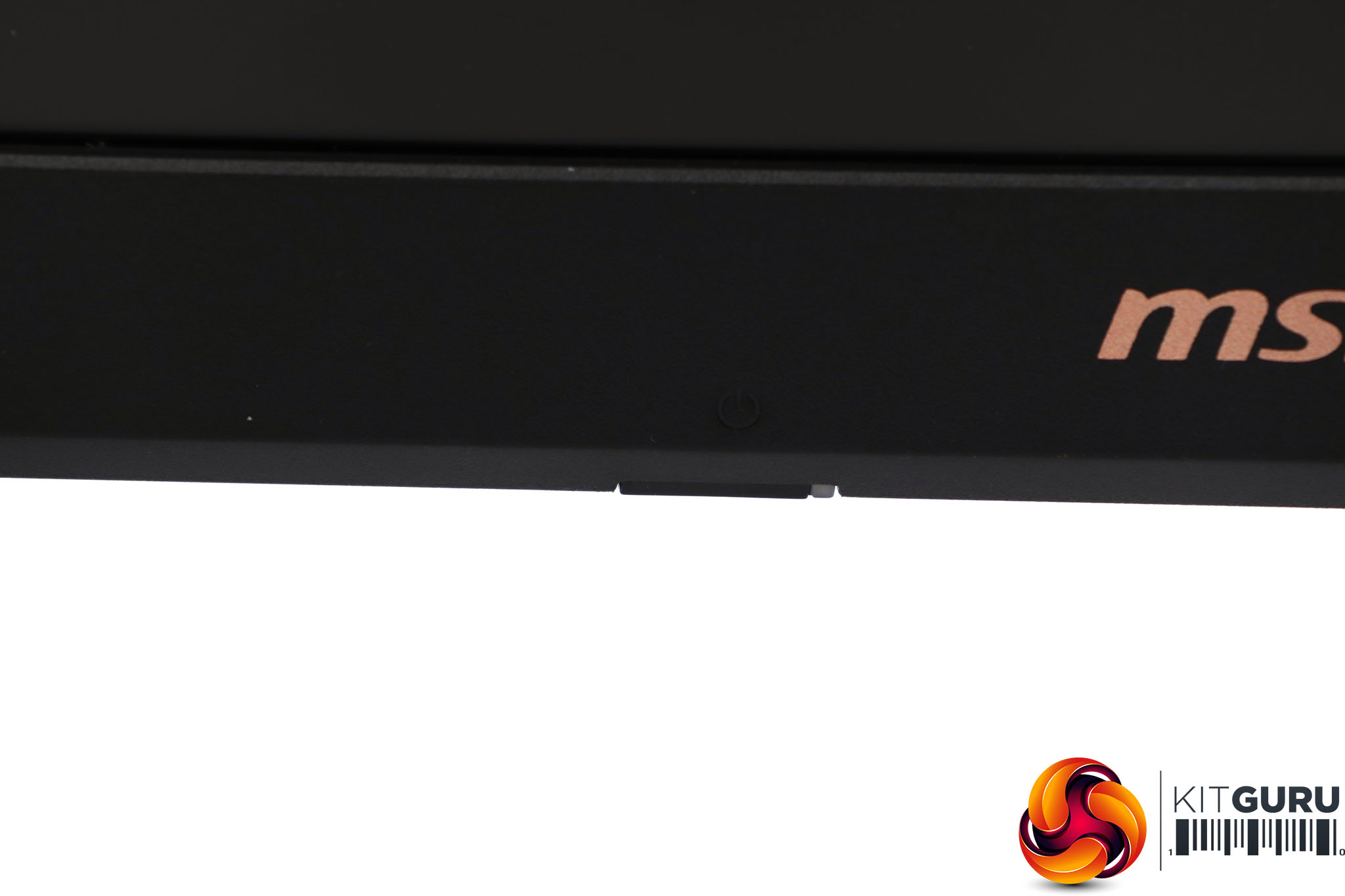 The menu is exclusively operated with a joystick on the rear. This has become a pretty standard system, although some manufacturers also provide some buttons. MSI doesn't. But there is a separate power button on the bottom, rather than making this a function of the joystick as some manufacturers do, such as Samsung. There's also a G function button on the bottom left, which we'll discuss later in this review.