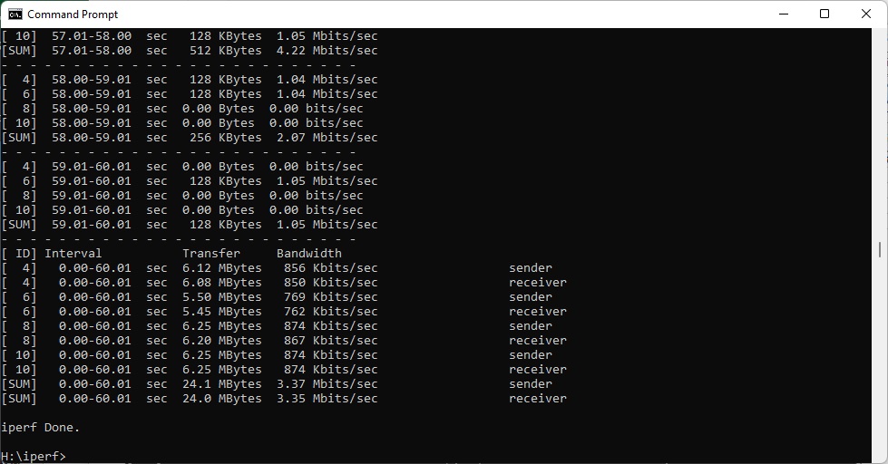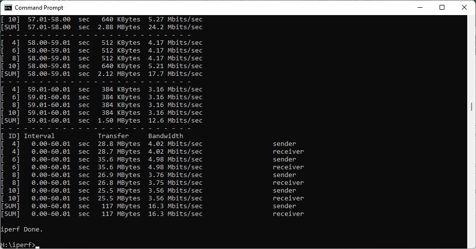 We used the open-source iPerf 3.1.3 software for testing, which can simulate multiple clients streaming at once. Four Windows systems were used. One was an Armari 32-core AMD Ryzen Threadripper workstation running Windows 11, another a Dell XPS 17 notebook (with WiFi 6), a third was an MSI WS63-7RK (802.11ac) notebook, and finally an HP Folio 3 notebook (802.11n only – to show performance with legacy devices). The Dell notebook and Armari workstation were running Windows 11 but the other two notebooks were Windows 10-powered.