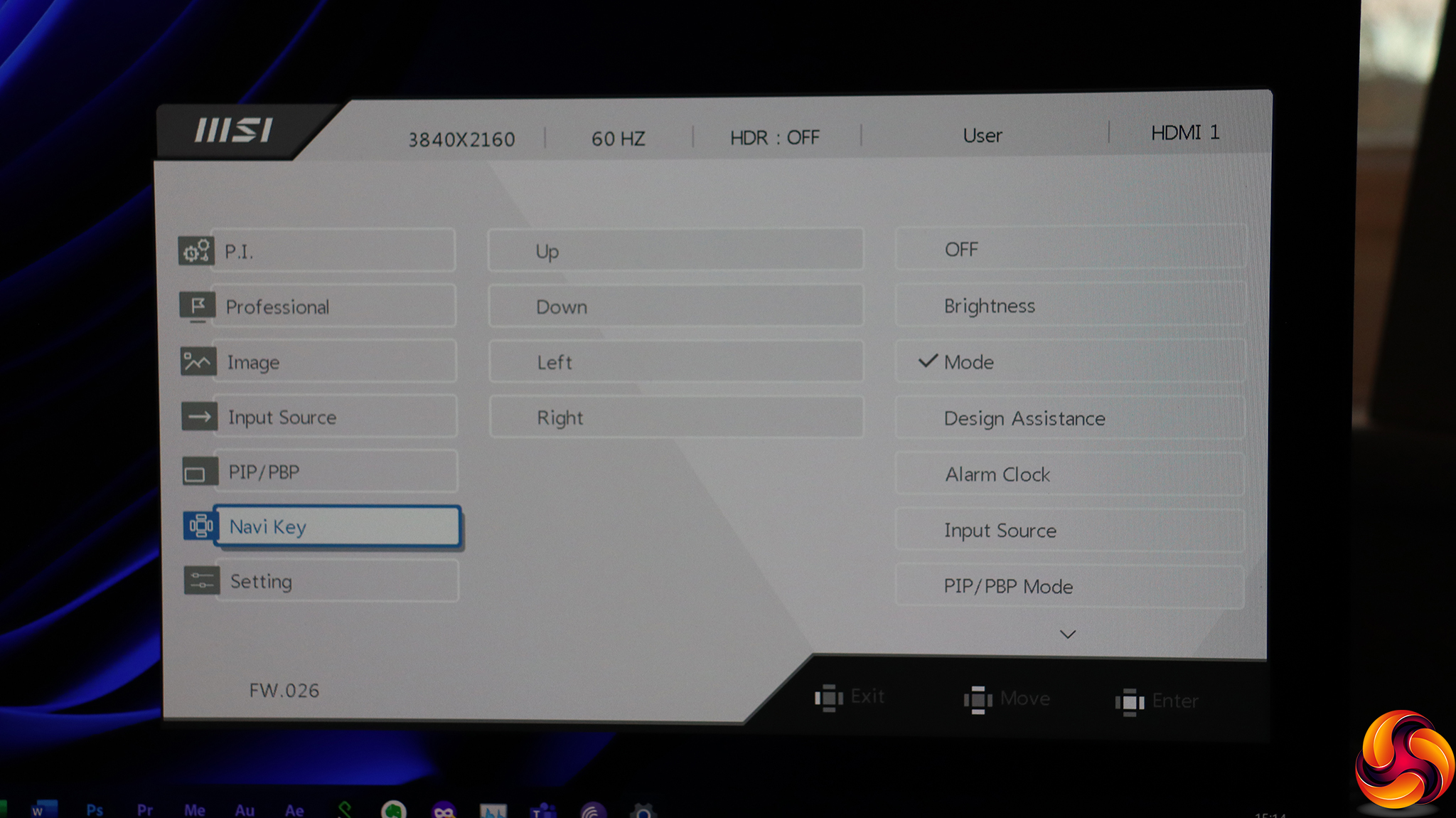 Push the joystick inwards and the main menu appears, starting with the OSD-based version of Productivity Intelligence. This enables features such as ambient light, auto brightness control, and how the KVM feature functions.