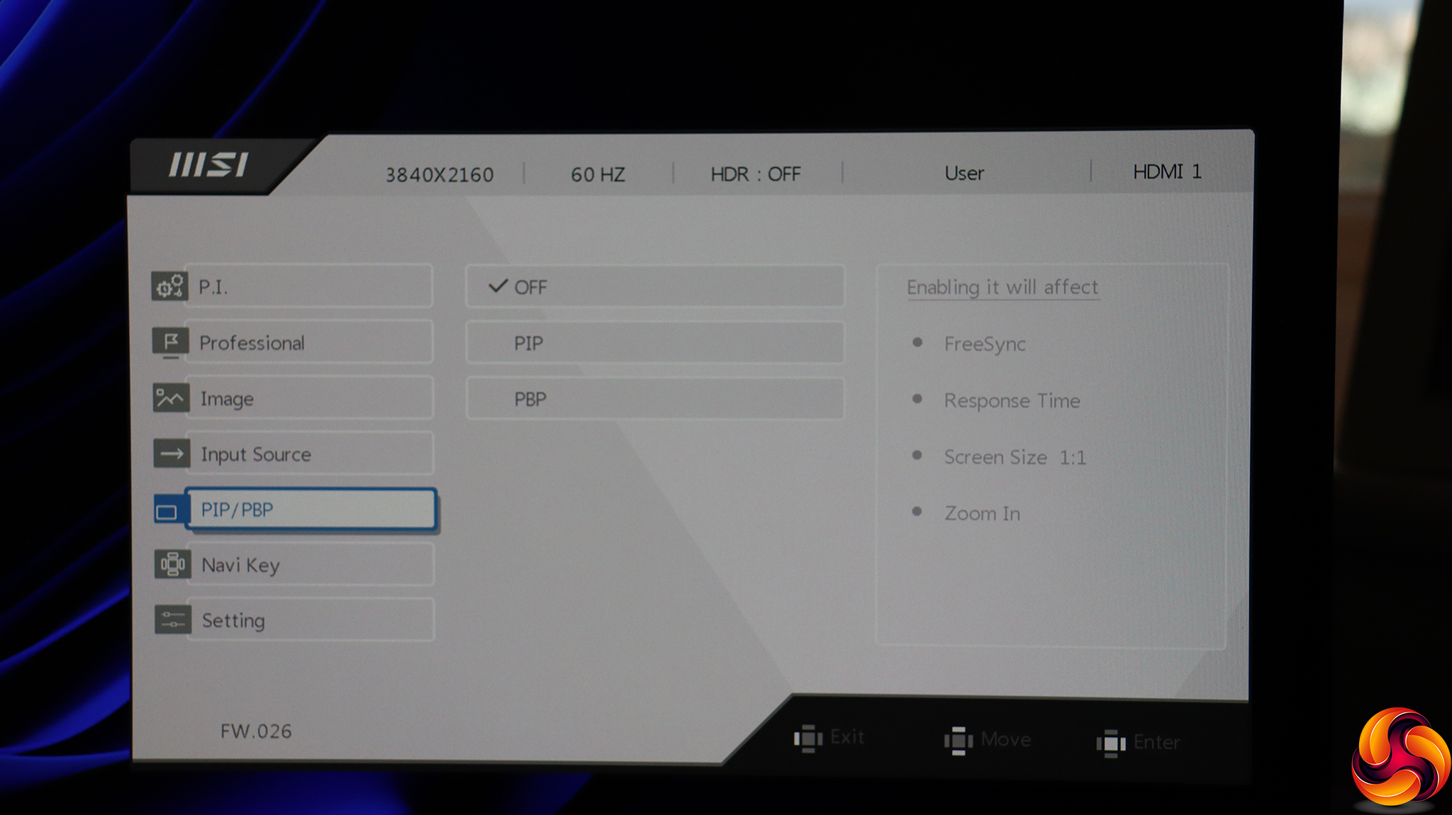 There are picture-in-picture and picture-by-picture options, which makes sense when you have four video inputs and a 4K screen resolution.