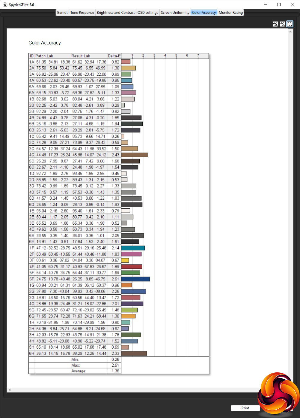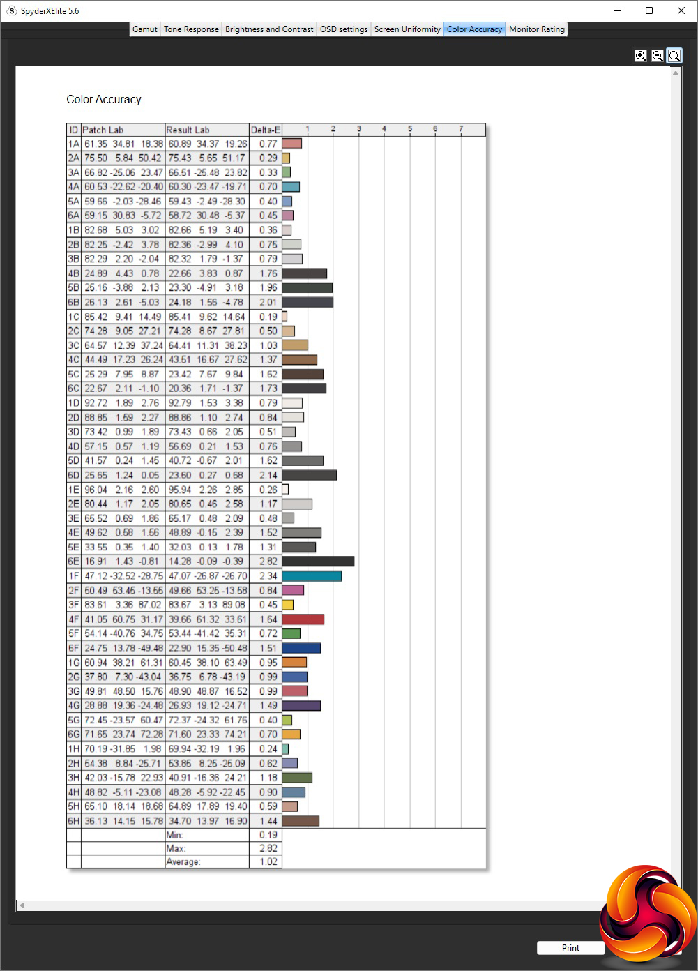 - The colour accuracy, expressed as a Delta E ratio, with a result under 3 being fine for normal use, and under 2 being great for colour-accurate design work.