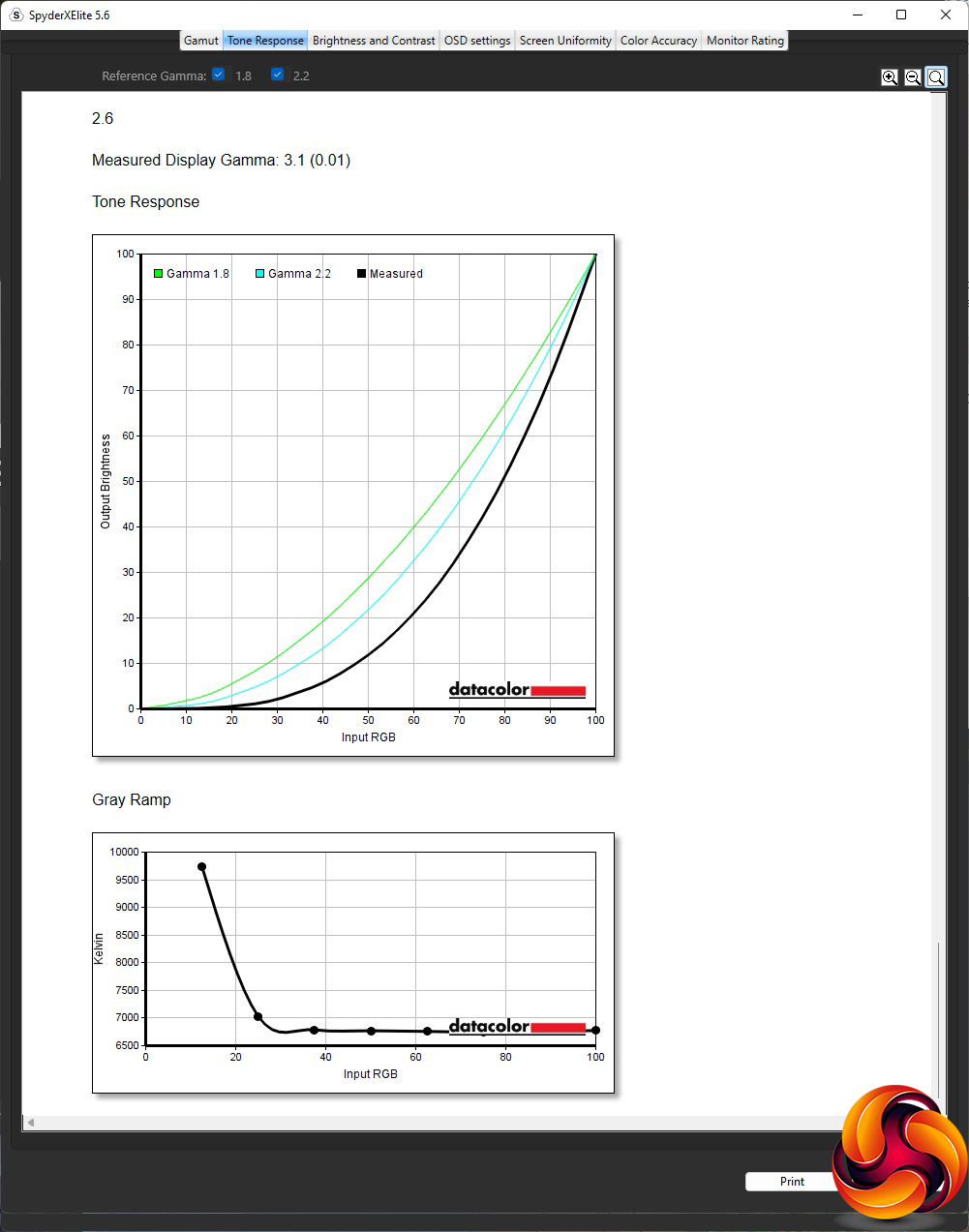 We only retested the default Gamma 2.2, because gamma usually doesn't change with calibration. It hadn't – it was still a lot higher at 2.6.